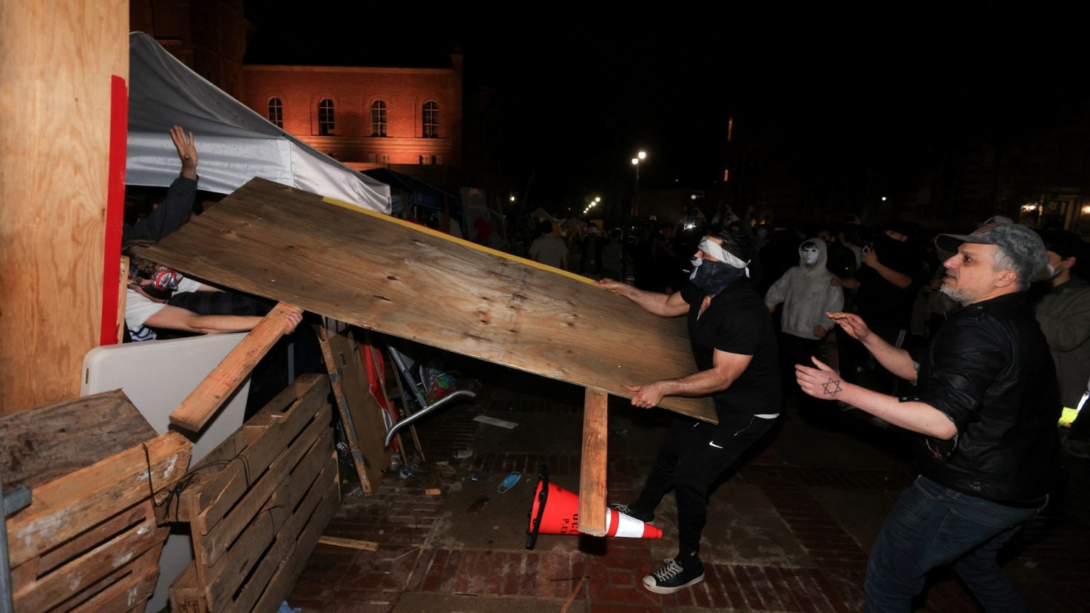 اندلعت أعمال العنف في جامعة كاليفورنيا في لوس أنجلوس في وقت متأخر من يوم الثلاثاء عندما هاجمت مجموعة من المؤيدين لإسرائيل الطلاب المؤيدين للفلسطينيين بالعصي والأعمدة، وحاولوا تدمير مخيمهم الطلابي المؤقت.