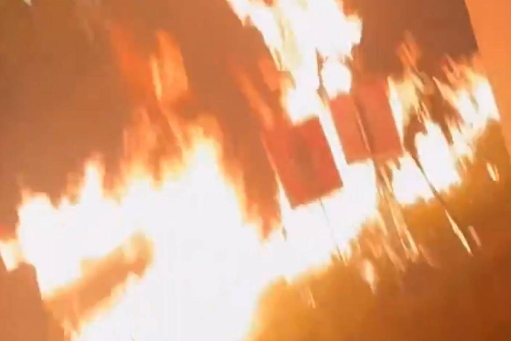 انتشر على مواقع التواصل الاجتماعي مقطع فيديو يُزعم أنه يصور الحادث. ويظهر في الفيديو رجلاً ينشر سائلاً ثم يشعل النار. وسرعان ما انتشرت النيران في جميع أنحاء المنطقة المحيطة.
