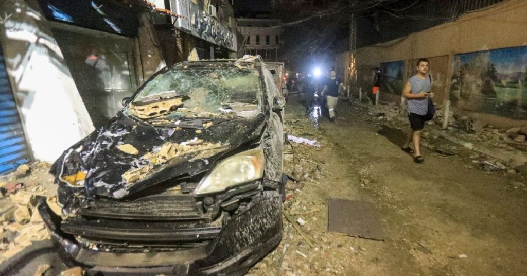 وتجمع شبان في الموقع وسط الغبار وشظايا الزجاج المحطم، مرددين “نحن في خدمتك يا نصر الله”، في إشارة إلى زعيم حزب الله حسن نصر الله.