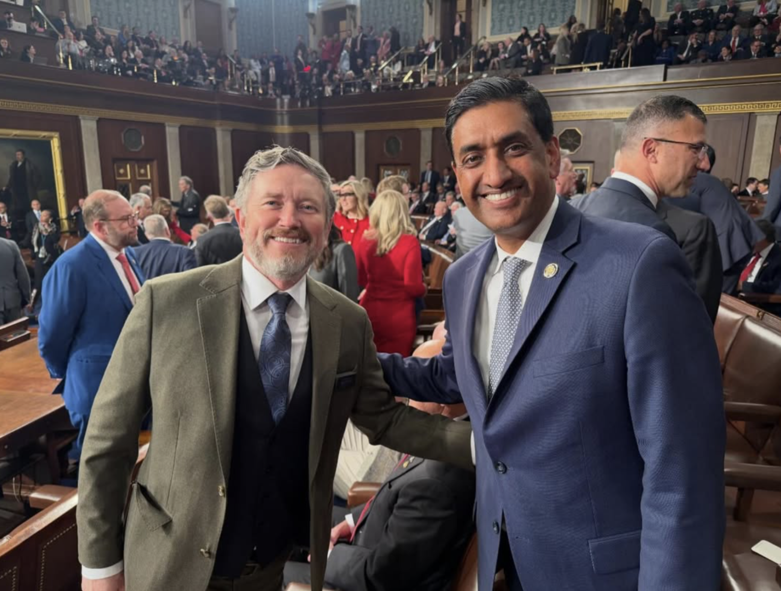 شهدت واشنطن لحظة نادرة على هامش خطاب حالة الاتحاد السنوي للرئيس، حيث اجتمع نائبان عن الحزبين الجمهوري والديمقراطي، النائب رو خانا والنائب توماس ماسي، متحدين في موقف مشترك. جاء هذا التوحد اللافت للنظر في ظل حديث الرئيس دونالد ترامب المستمر عن استخدام القوة العسكرية ضد إيران، بالتزامن مع ادعائه بأن الولايات المتحدة قد دمرت مواقعها النووية بالفعل في يونيو الماضي.