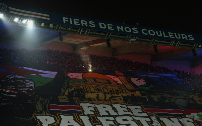 ويأتي هذا القرار بعد رفع لافتة ضخمة كتب عليها “فلسطين حرة” من قبل جماهير باريس سان جيرمان يوم الأربعاء الماضي قبل مباراة دوري أبطال أوروبا لكرة القدم ضد أتلتيكو مدريد.