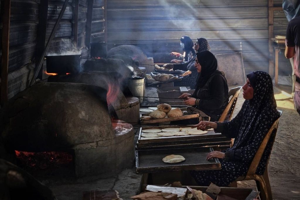 ان الأناضول زار مراسلنا مخبزاً قديم الطراز في مدينة خان يونس جنوب قطاع غزة، حيث تقوم النساء بخبز الخبز لتوزيعه على الأسر النازحة بمساعدة منظمة إغاثة دولية.