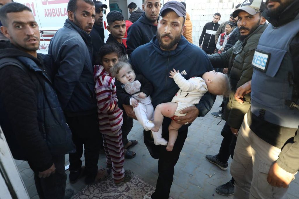 فلسطينيون، بينهم أطفال، أصيبوا في هجوم الجيش الإسرائيلي على مخيم النصيرات، يتم نقلهم إلى مستشفى العودة لتلقي العلاج في مدينة غزة، قطاع غزة، في 29 ديسمبر 2024. (معز صالحي - وكالة الأناضول)