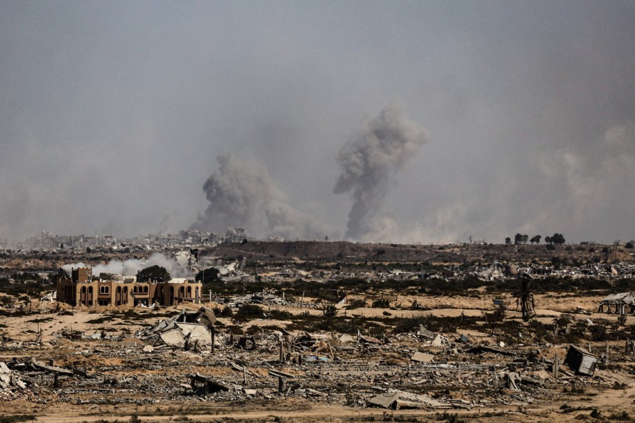 يتصاعد الدخان من المنطقة بينما تواصل إسرائيل هجماتها على الرغم من دعوة الرئيس الأمريكي دونالد ترامب إلى “الوقف الفوري للهجمات على غزة”. مخيم النصيرات للاجئين في مدينة غزة، غزة، 4 أكتوبر، 2025. (خميس الرفي- وكالة الأناضول)