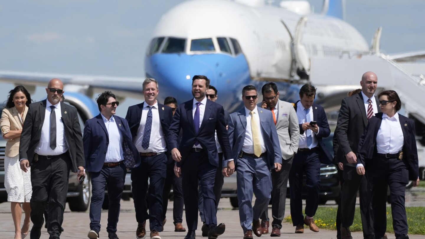 دقائق بعد نائب الرئيس كامالا هاريس هبطت مع زميلتها الجديدة في الجري تيم والز في أول محطة لحملتهم في الولاية، مرشح الحزب الجمهوري لمنصب نائب الرئيس جيه دي فانس وصل. سار عبر المدرج للتحقق من الطائرة الرئاسية الثانية، وكاد أن يصطدم بهاريس.