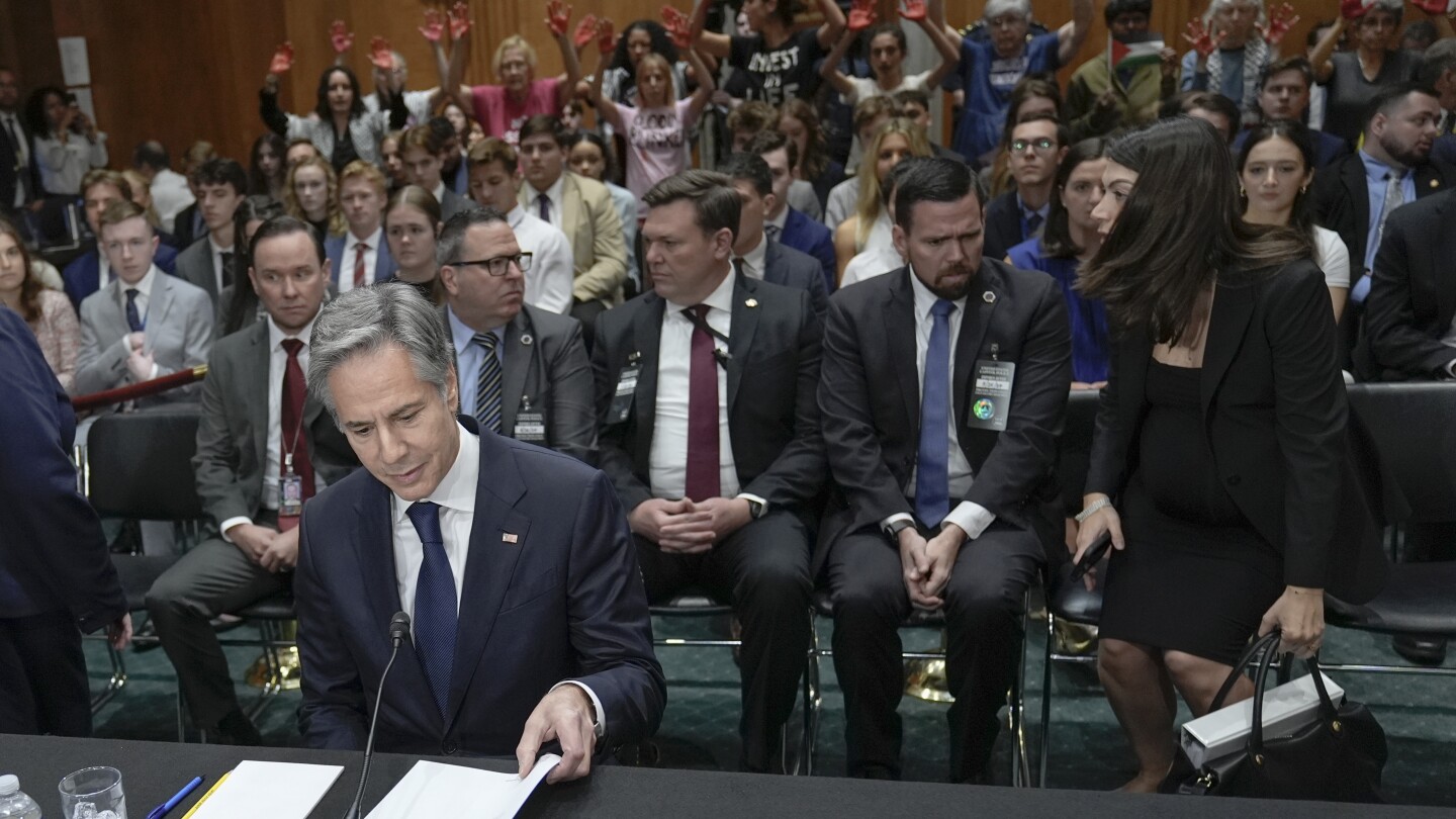 وقاطع بلينكن مراراً وتكراراً حديثه أمام أعضاء مجلس الشيوخ حول مقترح ميزانية الشؤون الخارجية لإدارة بايدن، من قبل المتظاهرين الذين أدانوا سياسة الولايات المتحدة تجاه حليفتها إسرائيل وحربها ضد حماس في غزة.