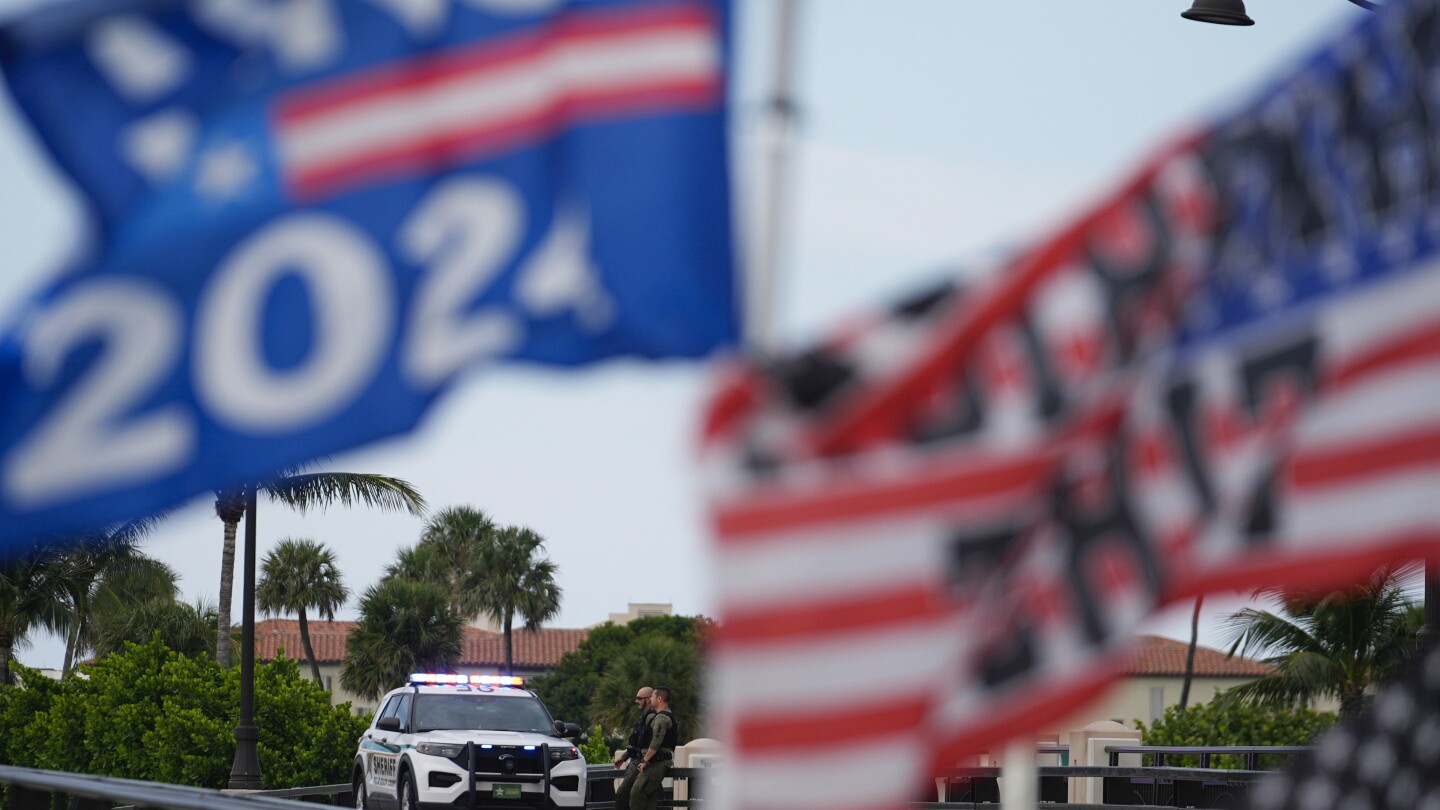 يوجه ضباط الشرطة حركة المرور بالقرب من نادي ترامب الدولي للغولف بعد محاولة اغتيال المرشح الرئاسي الجمهوري السابق دونالد ترامب في ويست بالم بيتش بولاية فلوريدا، الأحد 15 سبتمبر 2024. (AP Photo/Terry Renna)