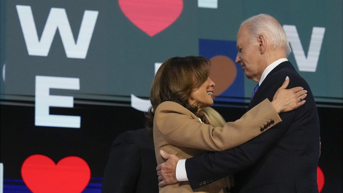 وظهرت نائبة الرئيس على خشبة المسرح بشكل غير مقرر لتكريم بايدن قبل خطابه في المؤتمر. وقالت للرئيس: “شكرًا لك على قيادتك التاريخية، وعلى خدمتك لأمتنا طيلة حياتك، وعلى كل ما ستستمر في القيام به”.