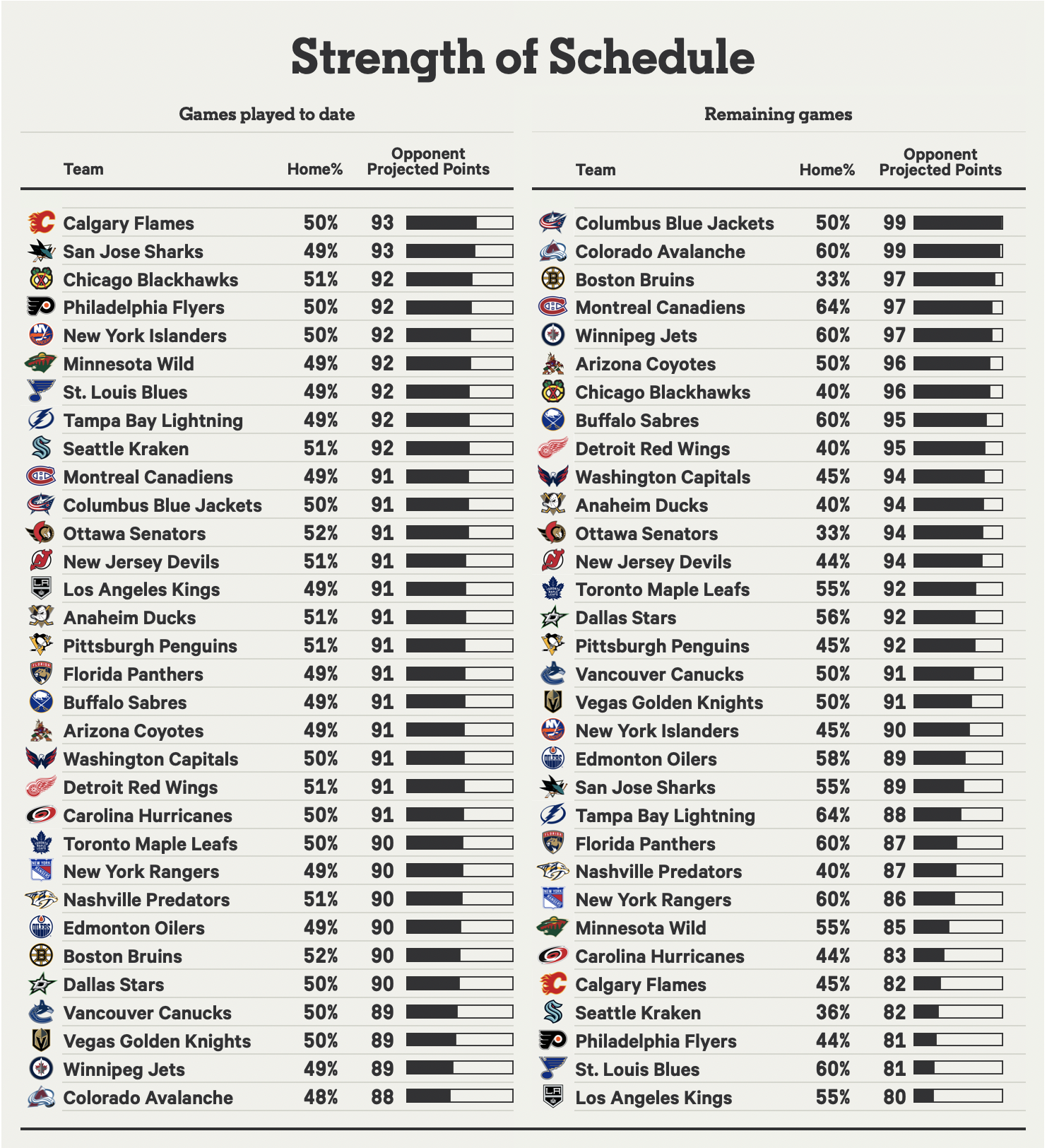 2023-24 قوة جدول NHL