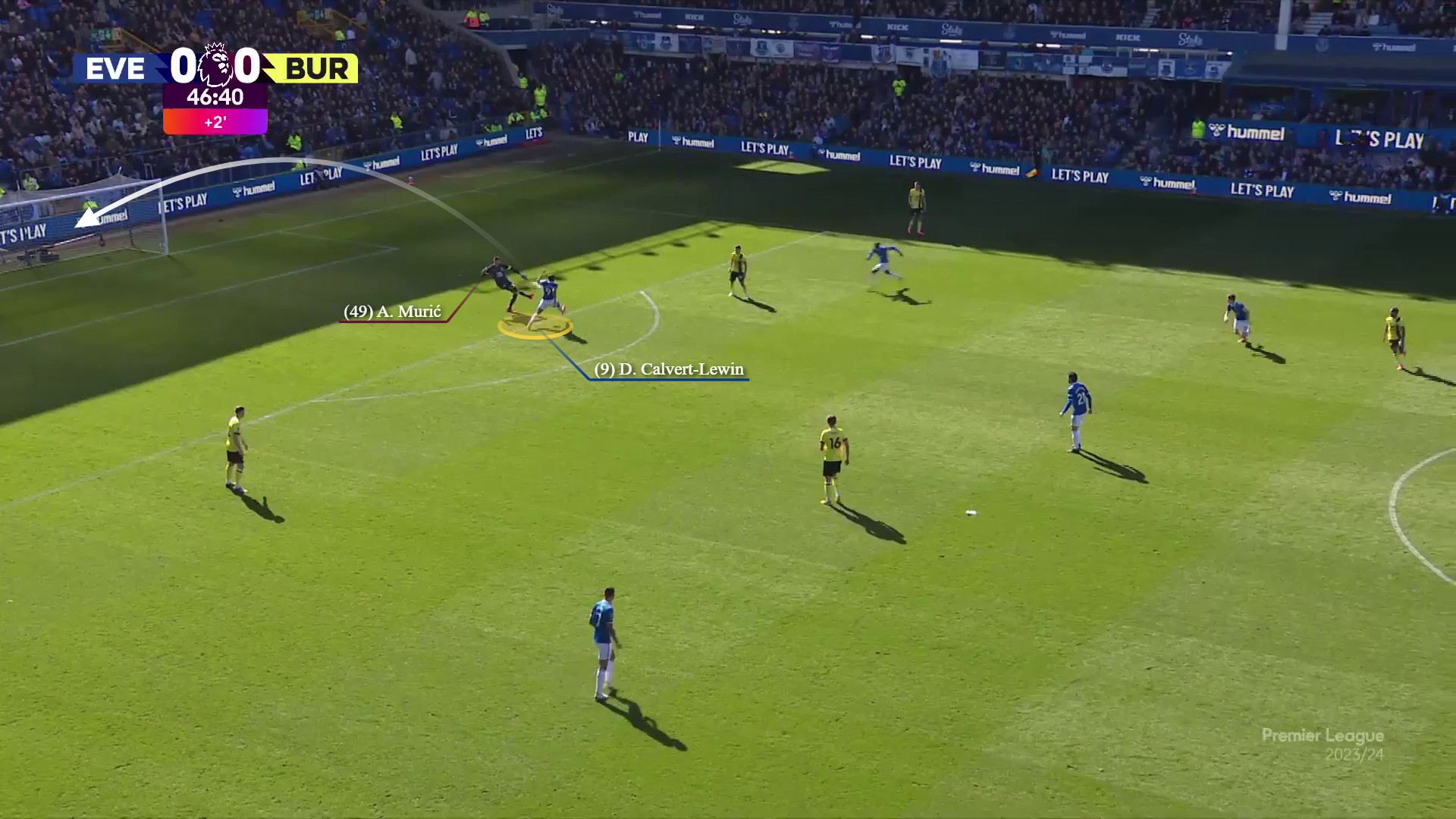 كان هناك هدوء في المباراة حيث حاول بيرنلي ممارسة بعض السيطرة من خلال استحواذ سهل على نصف ملعبهم. بدأ الأمر عندما أعاد تشارلي تايلور الكرة إلى موريتش، الذي مررها إلى ساندر بيرج على حافة منطقة الجزاء.