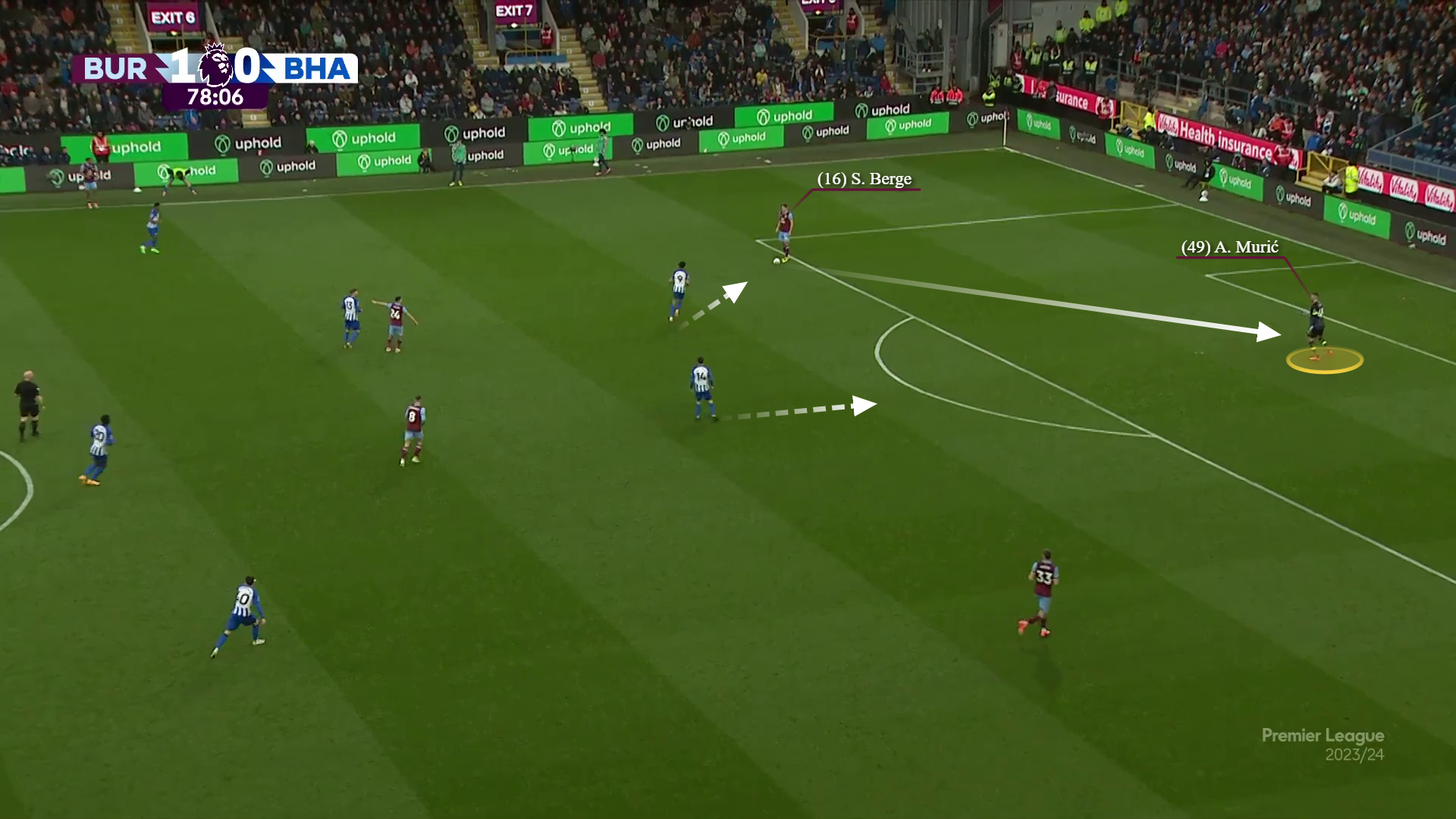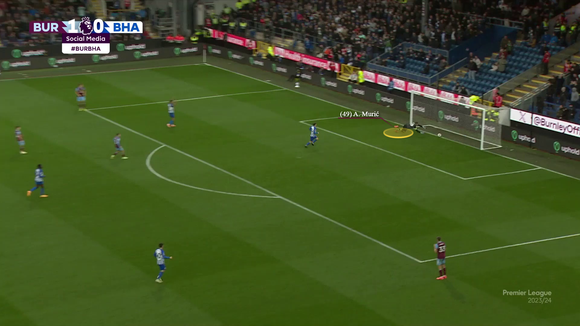 كان بيرج تحت ضغط قليل. وتوجه مهاجم برايتون جواو بيدرو نحوه بشكل عرضي، فأعاد تمريرة بسيطة إلى موريتش. لقد كان يسير بخطى جيدة ودقيقة.