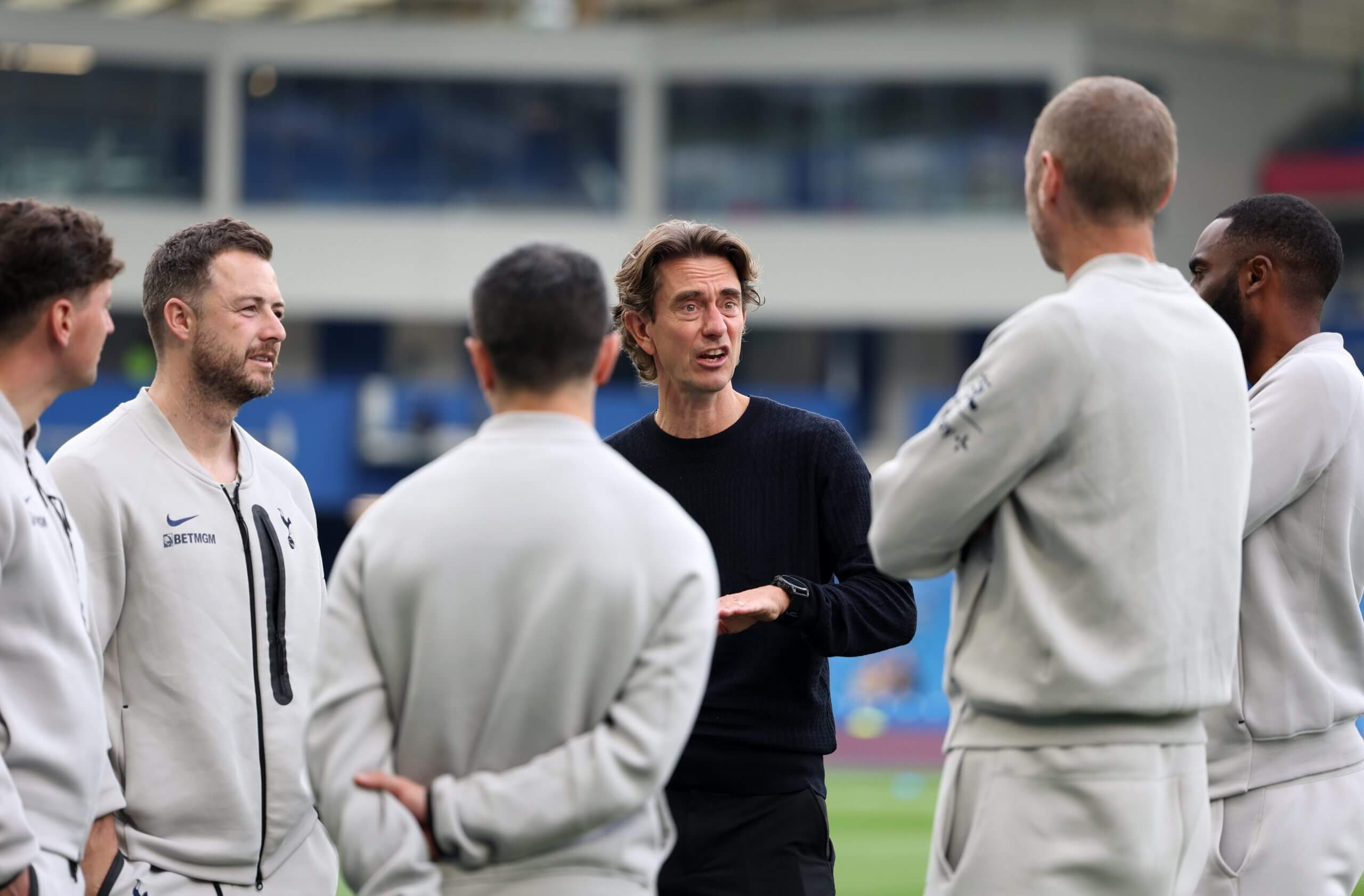 مدرب توتنهام توماس فرانك وطاقمه الخلفي الجديد (ستيف باردينز / غيتي إيماجز)