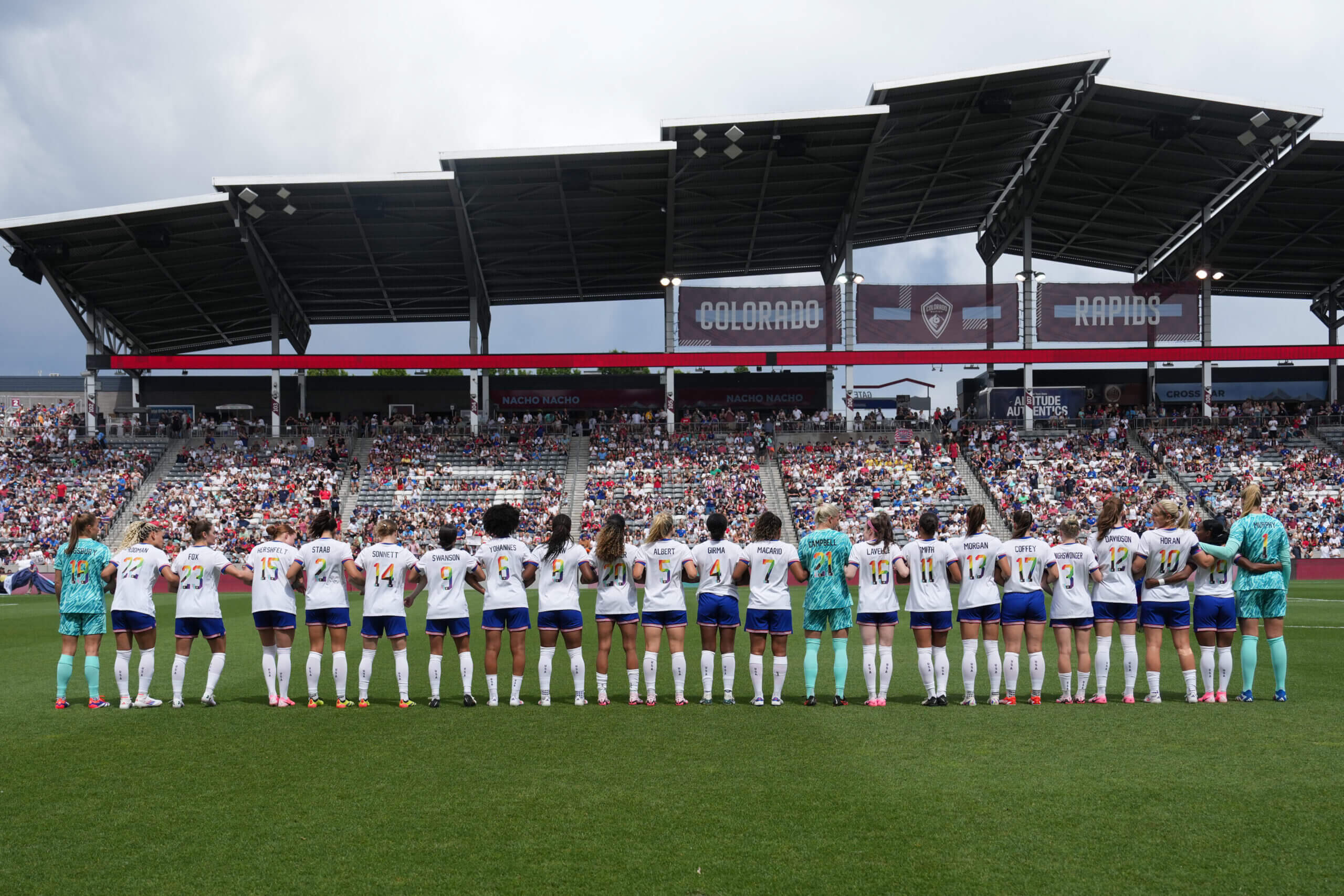 قوبل تقديم كوربين ألبرت، لاعبة خط وسط المنتخب الوطني الأمريكي للسيدات، ببعض صيحات الاستهجان من الجماهير في مدينة كوميرس سيتي بولاية كولورادو، عندما شاركت كبديلة في فوز فريق USWNT 4-0 على كوريا الجنوبية في اليوم الأول من شهر الفخر في الولايات المتحدة. الولايات المتحدة.