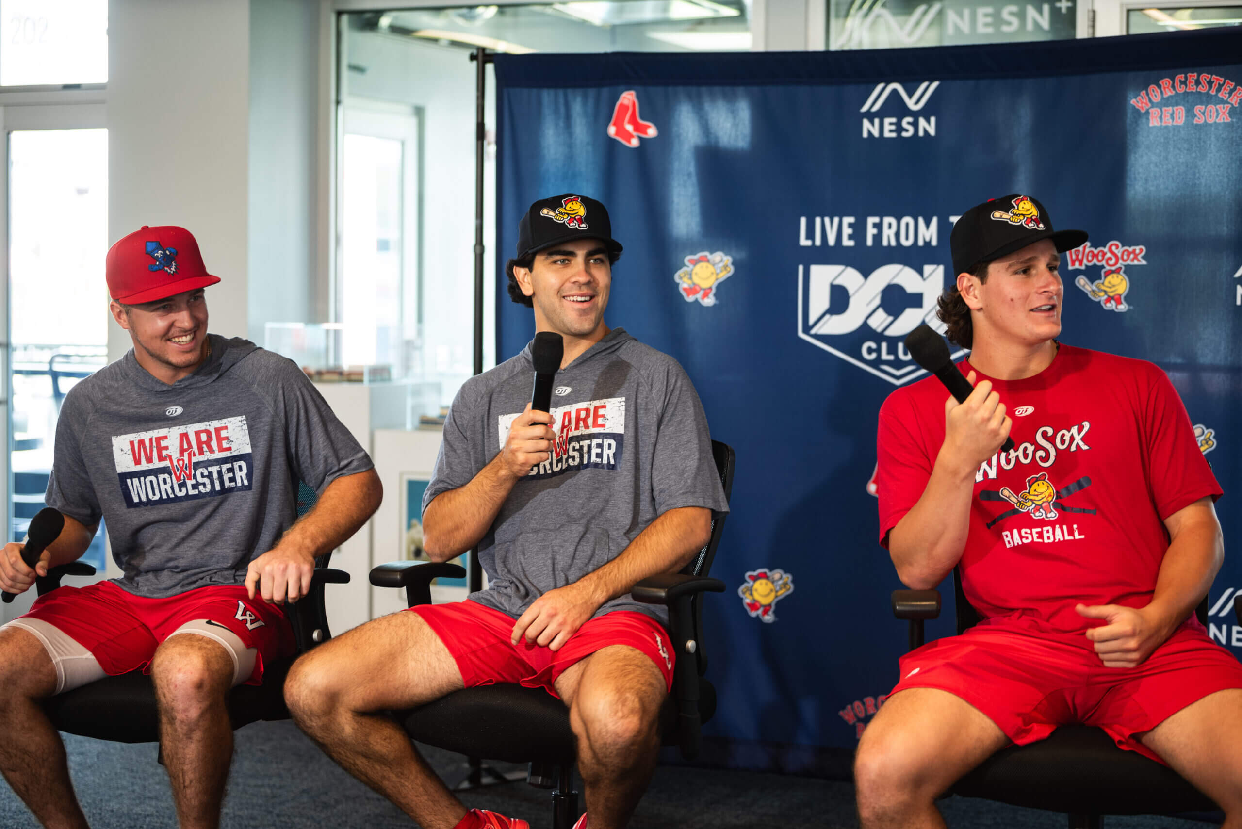 (الصورة العلوية لكايل تيل ومارسيلو ماير ورومان أنتوني أثناء لقاء وسائل الإعلام في ووستر: آشلي جرين / ووستر ريد سوكس)