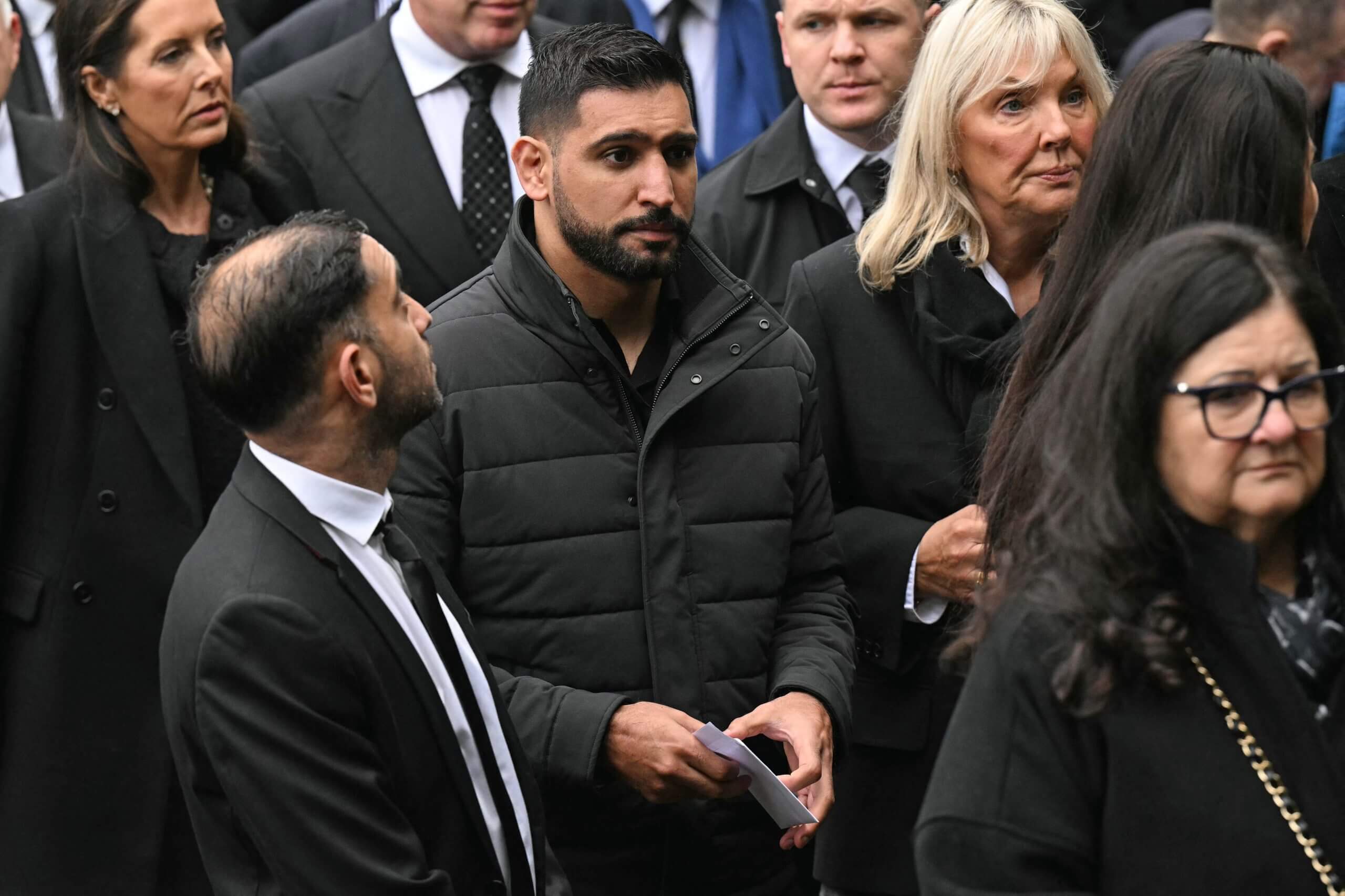 كان الملاكم البريطاني السابق أمير خان من بين المشيعين (Oli Scarff/AFP عبر Getty Images)