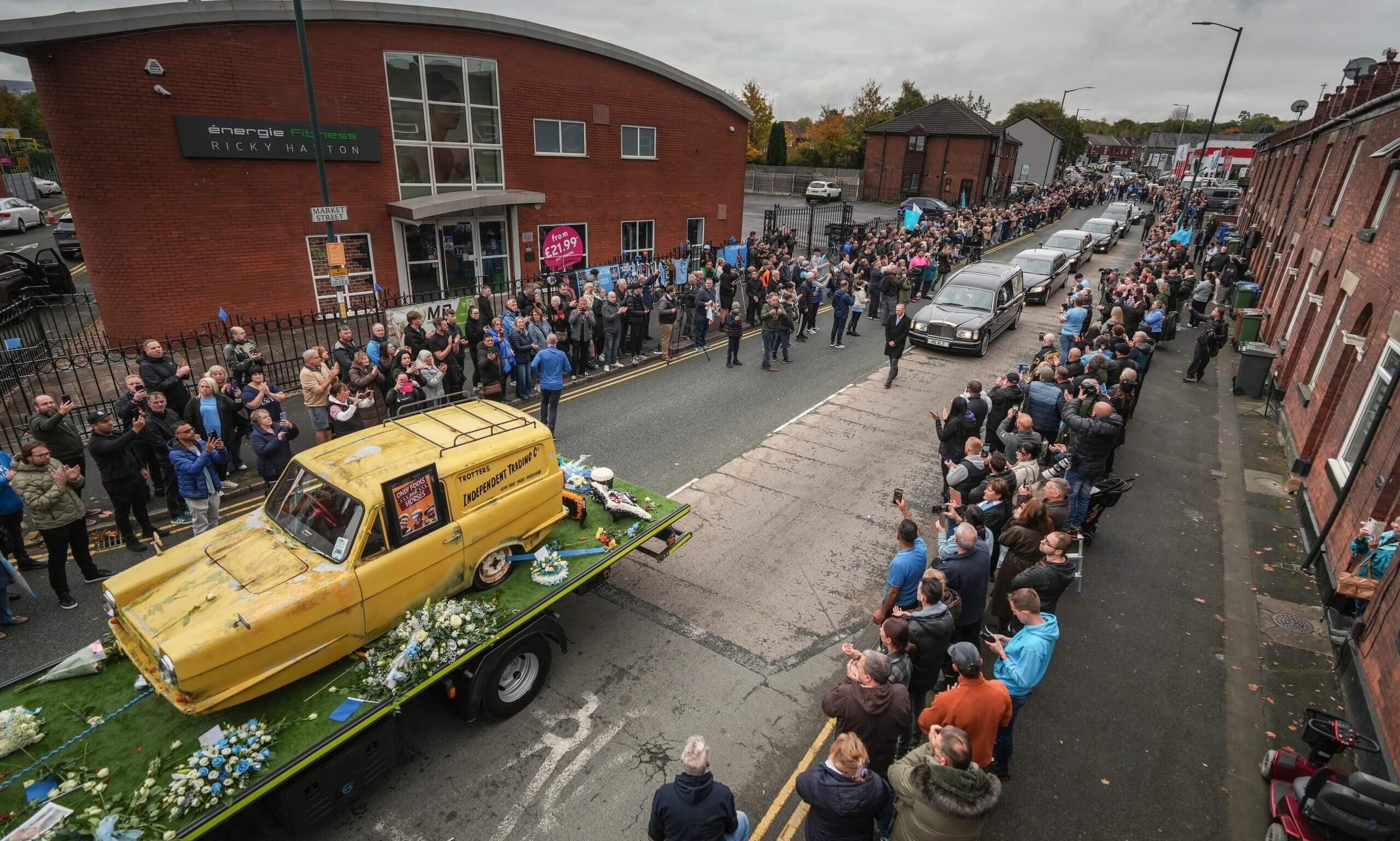 وأعلنت عائلة هاتون تفاصيل جنازته الشهر الماضي للسماح للجماهير وأفراد المجتمع بتقديم احترامهم. بدأ الموكب في الساعة 9:45 صباحًا يوم الجمعة 10 أكتوبر، بدءًا من حانة Cheshire Cheese في هايد، وانتهاءً في كاتدرائية مانشستر، حيث بدأت مراسم الجنازة في منتصف النهار.