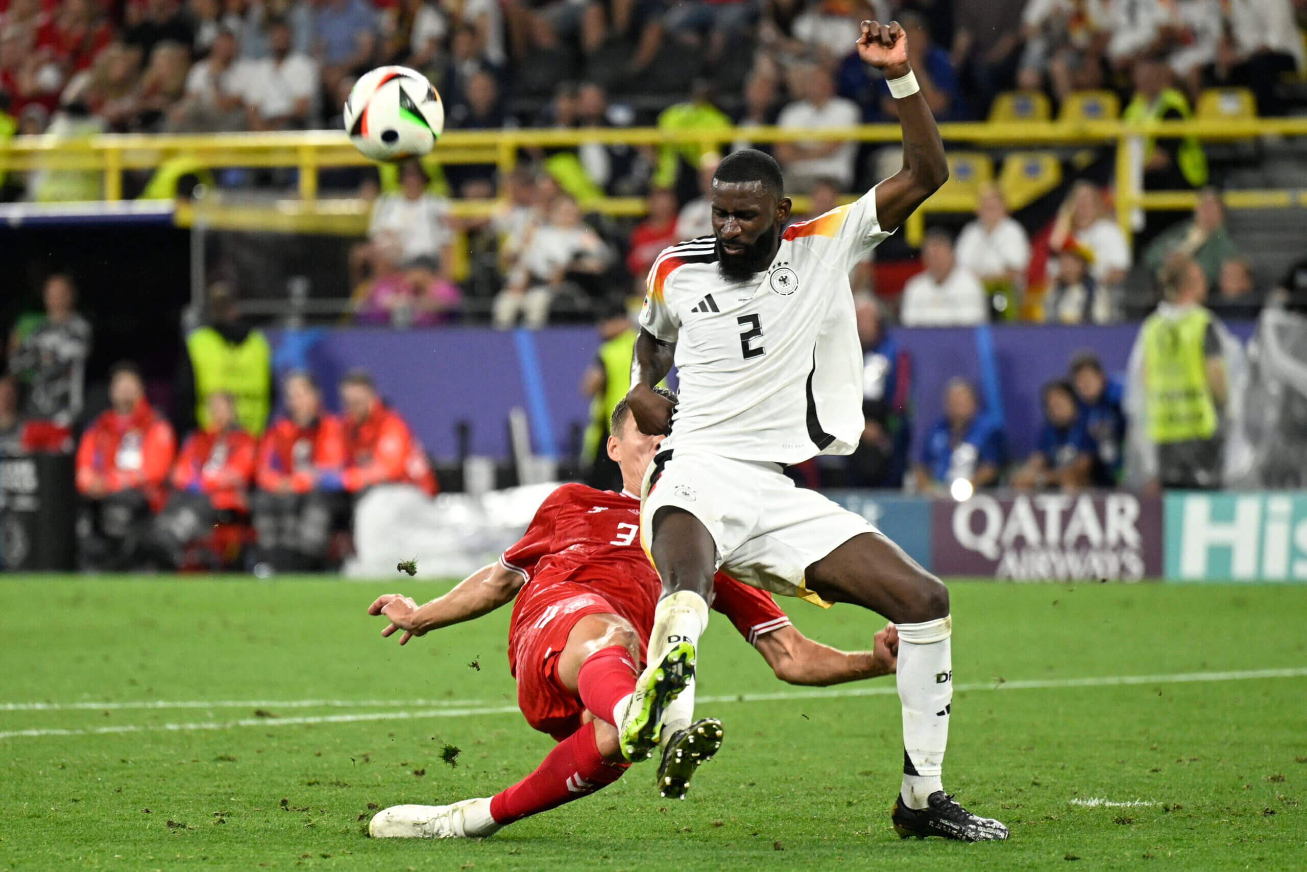 على سبيل المثال، هل تم الاحتفال بتشتيت دفاعي في تاريخ المنتخب الألماني بحماس أكبر من ذلك الذي حدث في الدقائق الأخيرة من المباراة التي فاز بها المنتخب الألماني بهدفين نظيفين، والتي دفعت روديجر إلى رفع قبضته في الهواء من على أرضية الملعب التي غمرتها الأمطار؟