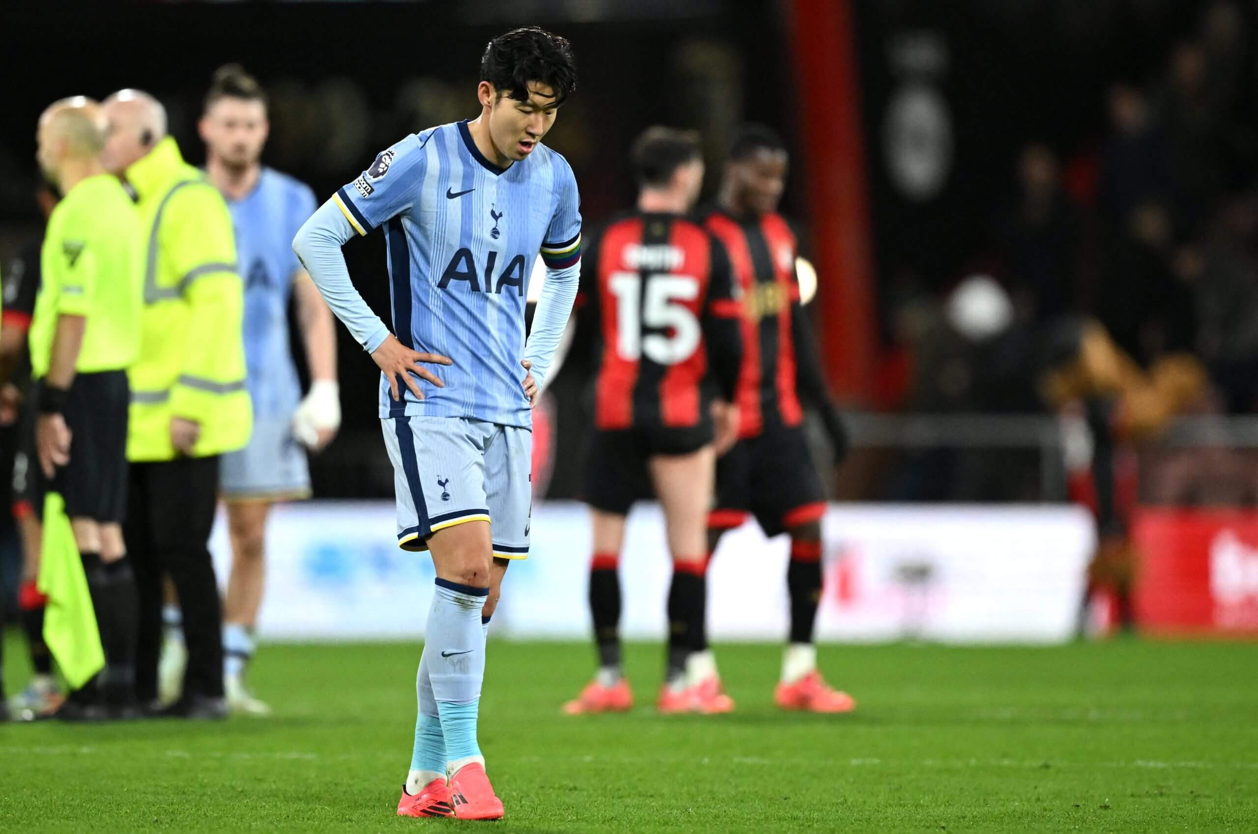 سون هيونغ مين يظهر بمظهر محبط بعد صافرة نهاية المباراة (جاستن تاليس/ وكالة الصحافة الفرنسية عبر غيتي إيماجز)