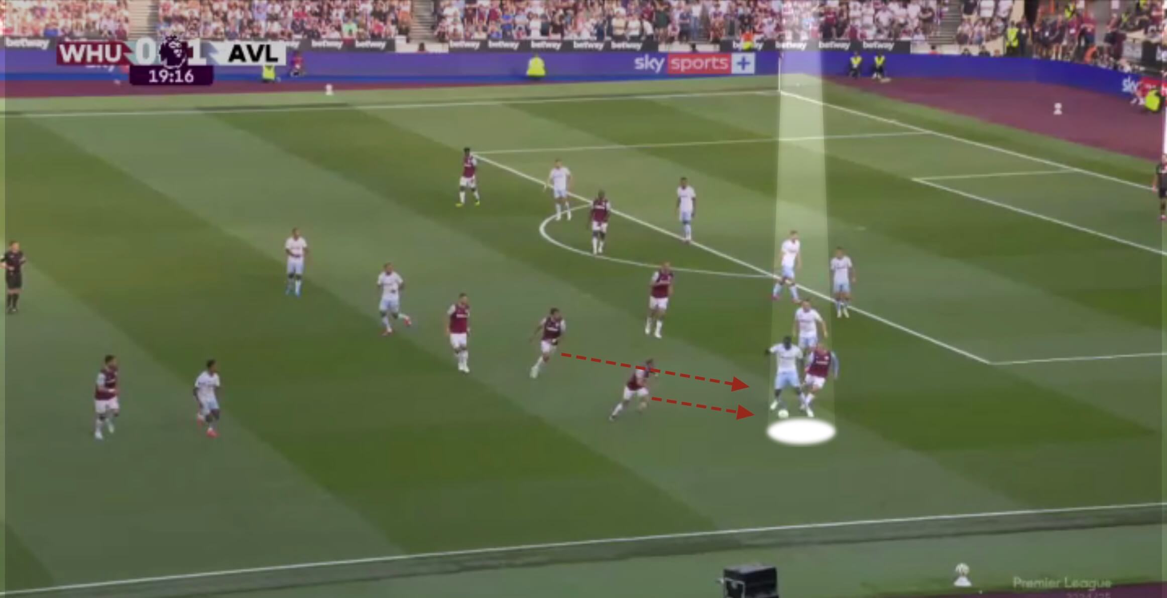 وضغط وست هام من خلال طريقة 4-3-3، وكان انتقائيا في اختيار الوقت المناسب للقيام بذلك في منطقة متقدمة من الملعب. وكانت الطريقة الأكثر وضوحا هي عندما يستحوذ حارس المرمى إيميليانو مارتينيز على الكرة ويهدف الفريق إلى منع تمريراته إلى وسط ملعب فيلا.