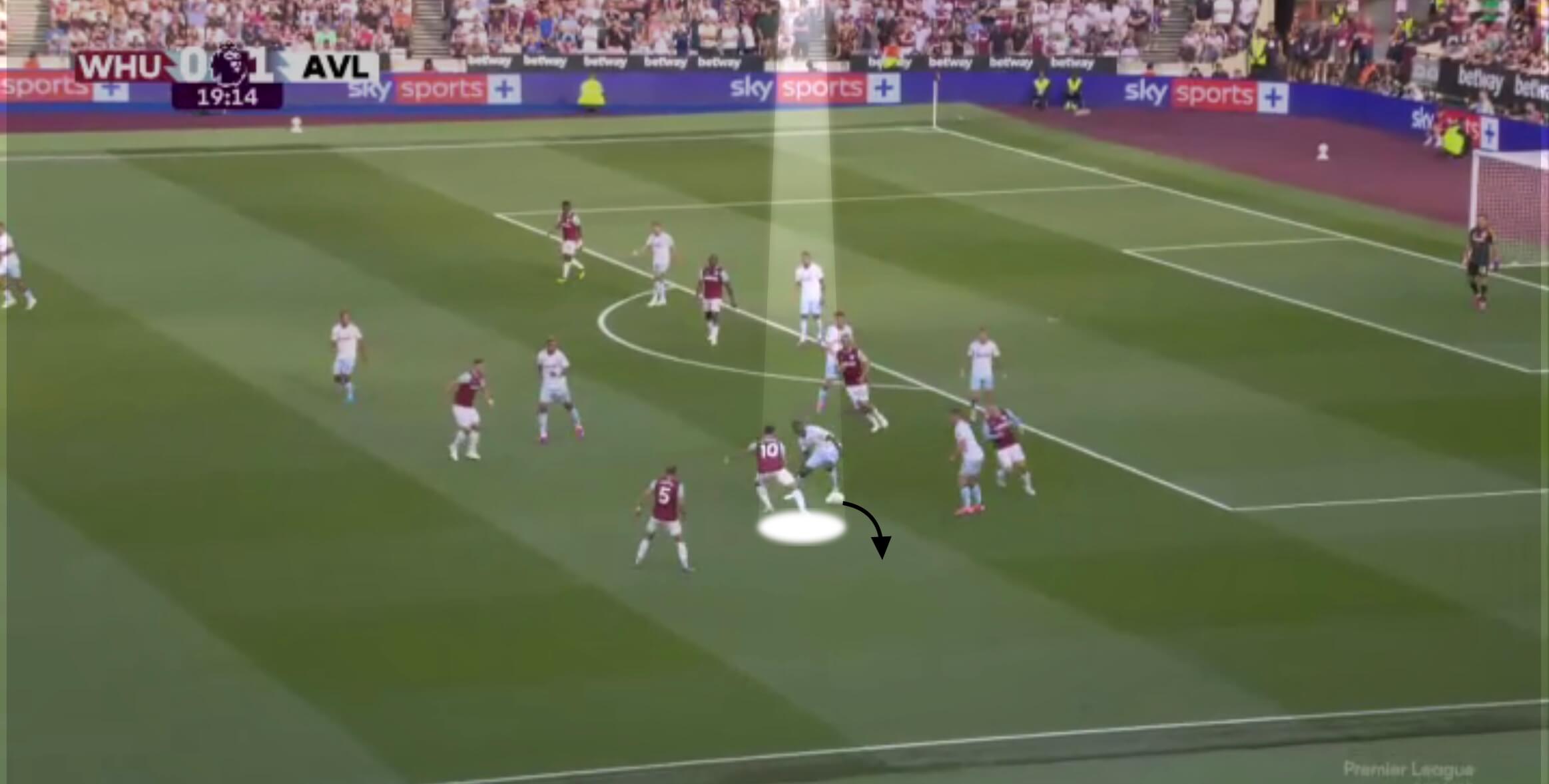 وكما هو مطلوب من لاعبي خط الوسط تحت قيادة إيمري، فإنه يقوم بعد ذلك بتمرير الكرة إلى أحد لاعبي خط الوسط رقم 10 في فريقه – مورجان روجرز.