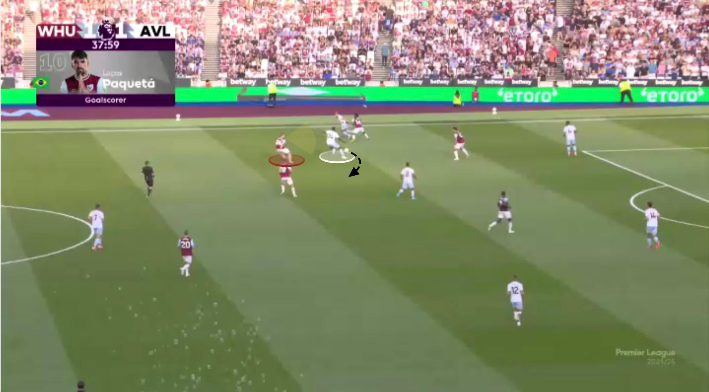 مع فقدان وست هام لقوته في الشوط الثاني، بدأ أونانا في استقبال الكرة من منتصف الملعب. وهنا، استقبل الكرة بقدمه الخلفية، لذا فإن لمسته الأولى كانت للأمام.