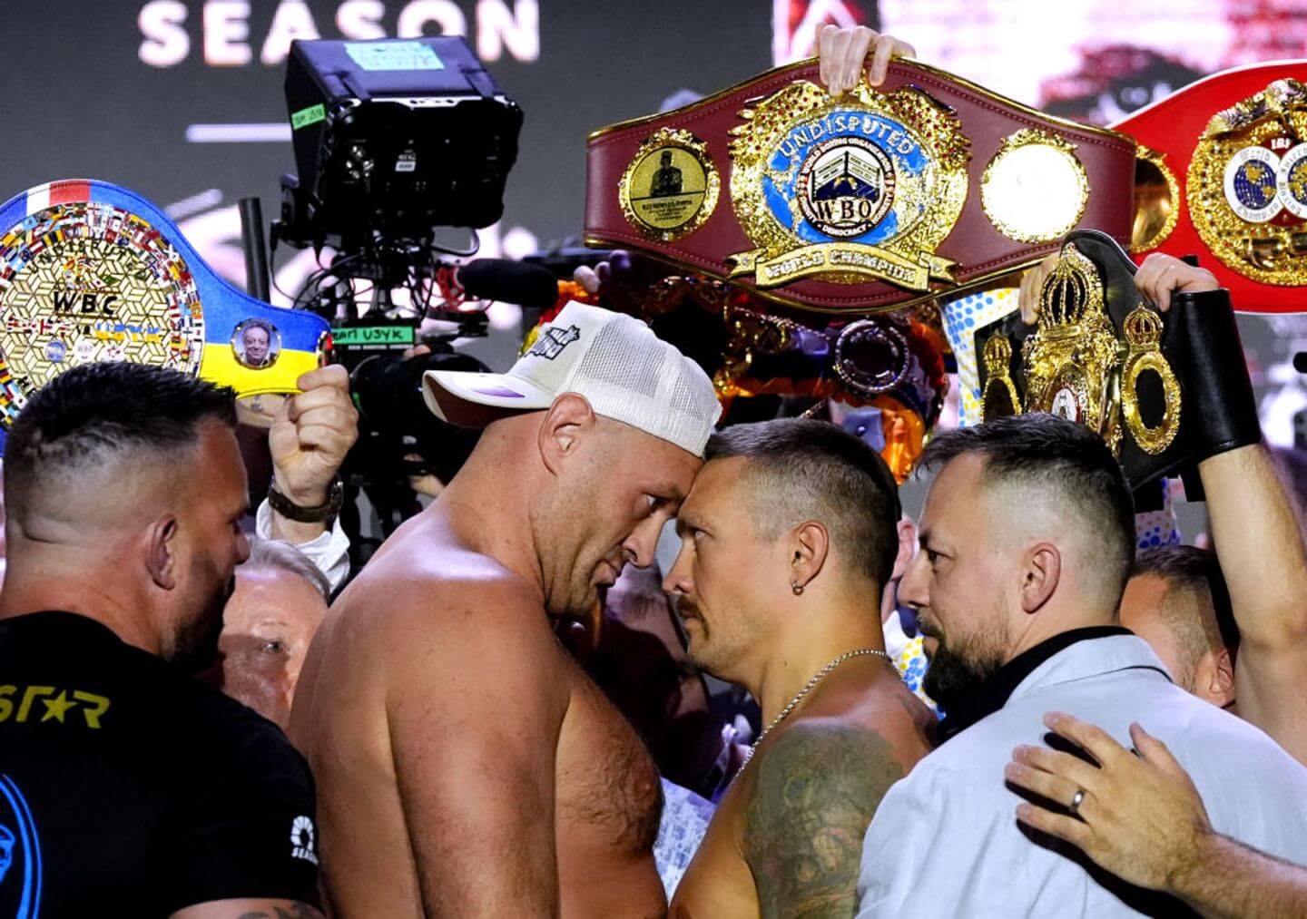 هناك الكثير على المحك اليوم. إنها أول معركة على لقب الوزن الثقيل بلا منازع منذ عام 1999 (المزيد عن ذلك لاحقًا) والمرة الأولى التي تكون فيها جميع الألقاب العالمية الأربعة الكبرى على المحك في عصر الأحزمة الأربعة.