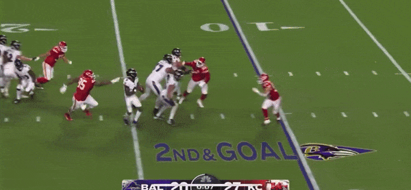 لقد أخطأ لامار جاكسون في التمريرة، أليس كذلك؟ خطأ. وكما أوضح في مؤتمره الصحفي بعد المباراة، كان يستهدف مستقبلاً مختلفًا، مع وجود سوء تفاهم على طول الطريق. كان جاستس هيل يحجب كريس جونز، وألقى جاكسون الكرة تحت الضغط. (نعم، لقد قرأت ذلك بشكل صحيح: كان لاعب الركض الاحتياطي هو الوحيد الذي يحجب أفضل معالج دفاعي في كرة القدم).