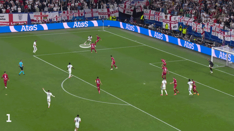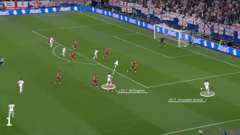 في الحقيقة، لم يكن من المفترض أن تتفاجأ صربيا برؤية هذا الإجراء حيث يبدو أنه لا يوجد أي لاعب يتتبع ركضته، لكن بيلينجهام ينجرف إلى داخل منطقة الجزاء ليقابل عرضية ساكا، دون أن يكسر خطوته، ليسدد برأسه لأول مرة.