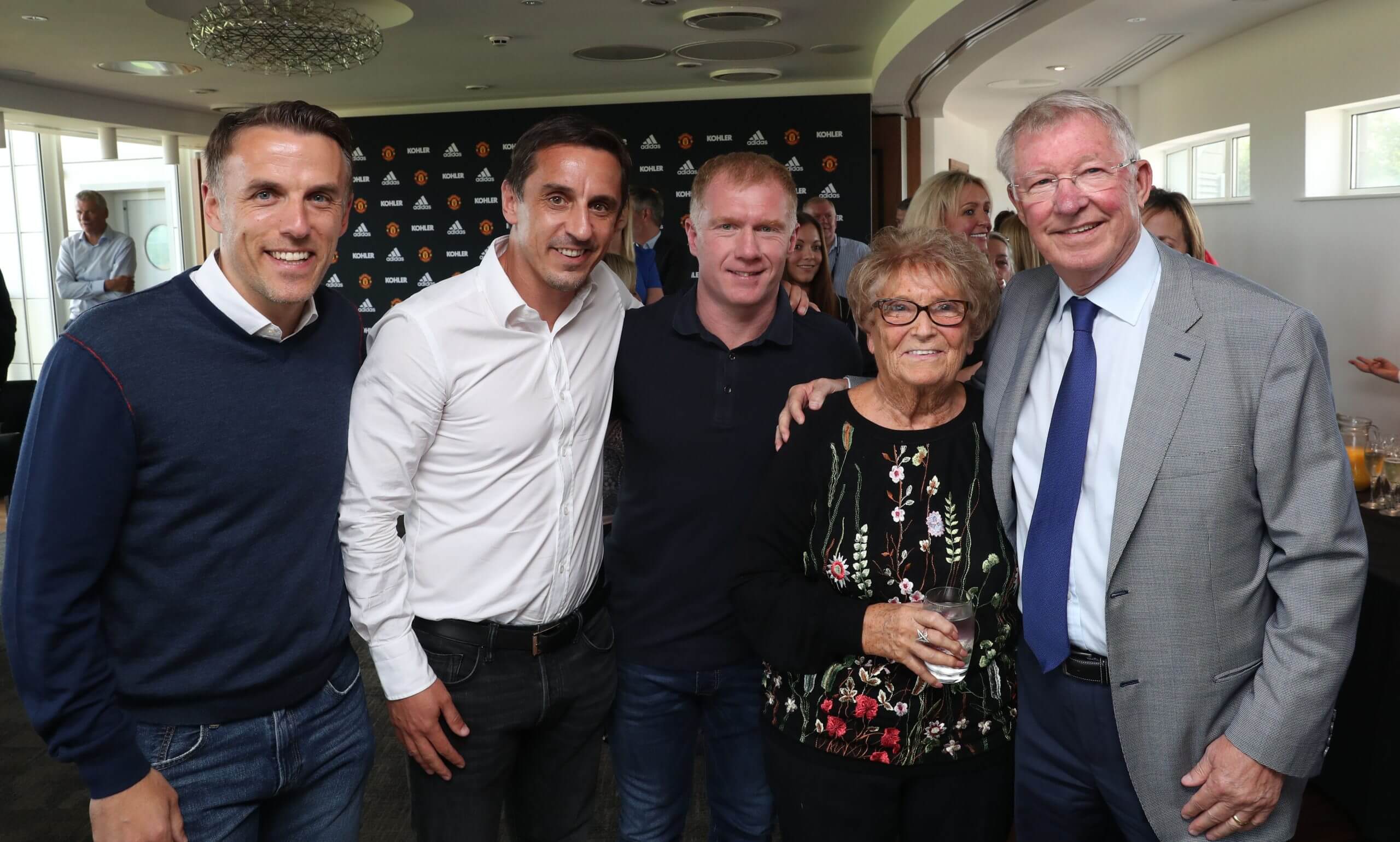 كاث مع، من اليسار إلى اليمين، فيل نيفيل، غاري نيفيل، بول سكولز والسير أليكس فيرجسون (الصورة: مانشستر يونايتد)