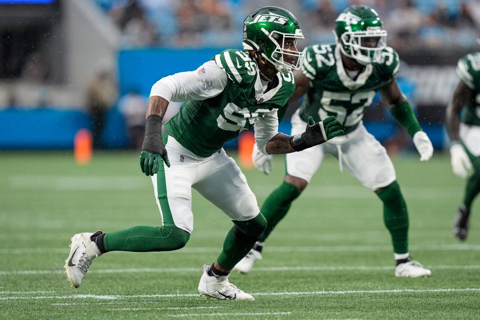 كان الاختيار الخامس في الجولة أحد أكبر الفائزين في الصيف. لم يلعب أبدًا في الكلية، لكن يبدو أن خبرته في الدوري الكندي لكرة القدم ساعدته – لا يخاف ستيجرز من أي شخص. افتتح مباراة يوم السبت بتدخل للخسارة وقام أيضًا بلعبة في تغطية الركلة. إذا كان بإمكانه المساهمة في الفرق الخاصة، فسيكون لديه فرصة للحصول على مكان نشط في القائمة في أيام المباريات. يتمتع فريق نيويورك جيتس بكثافة (وعمق) في مركز الظهير، لكن ستيجرز لديه مستقبل مشرق.