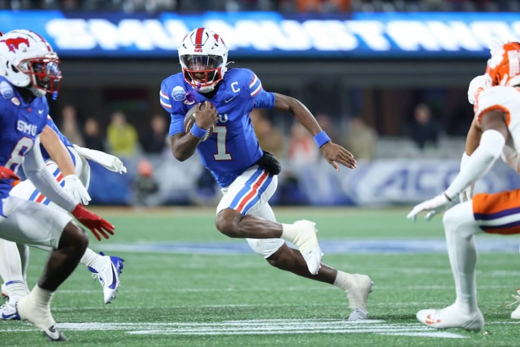 بعد الخسارة 34-31 أمام كليمسون بهدف ميداني في الثانية الأخيرة في مباراة بطولة ACC ليلة السبت، انتهى الأمر بفريق موستانج (11-2) إلى المركز العاشر في قائمة أفضل 25 فريقًا النهائية للجنة، أي أقل بمركزين عما كانوا قادمين في عطلة نهاية الأسبوع. ولكن متقدمًا بواحد على Crimson Tide وهو جيد بما يكفي للحصول على آخر العروض السبعة العامة.