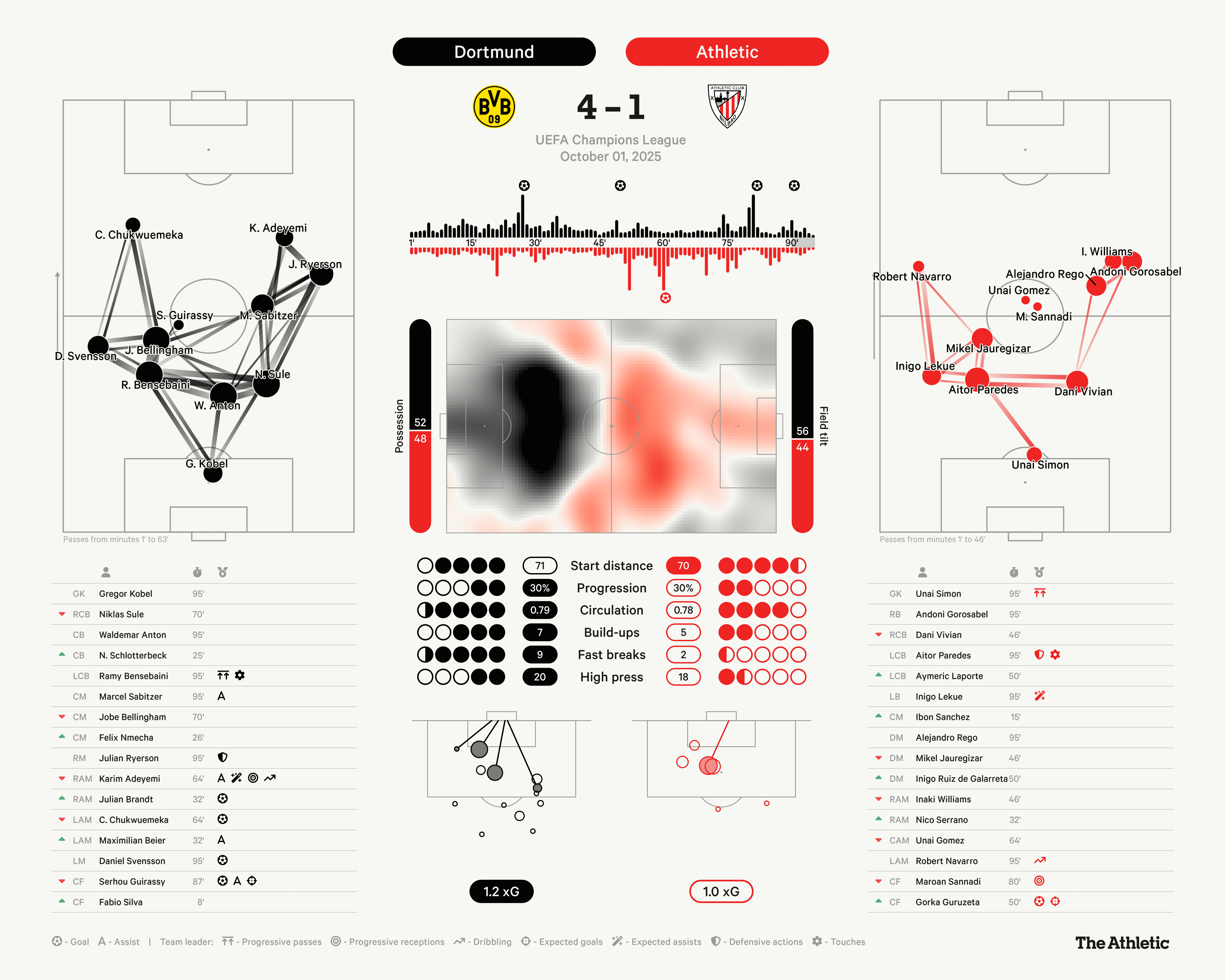 بوروسيا دورتموند سجلت فوزًا مقنعًا على Athletic Club ، مما يجعله ثمانية أهداف سجل من مباراتين. تحسنت احتمالات التأهيل المباشر لجولة 16 إلى 32 في المائة من 23 في المائة قبل يوم المباراة 1. لكن أصعب اختبارات دورتموند لم تأتي بعد ، مع مانشستر سيتي وتوتنهام هوتسبور وداخل خصومهم الباقين.