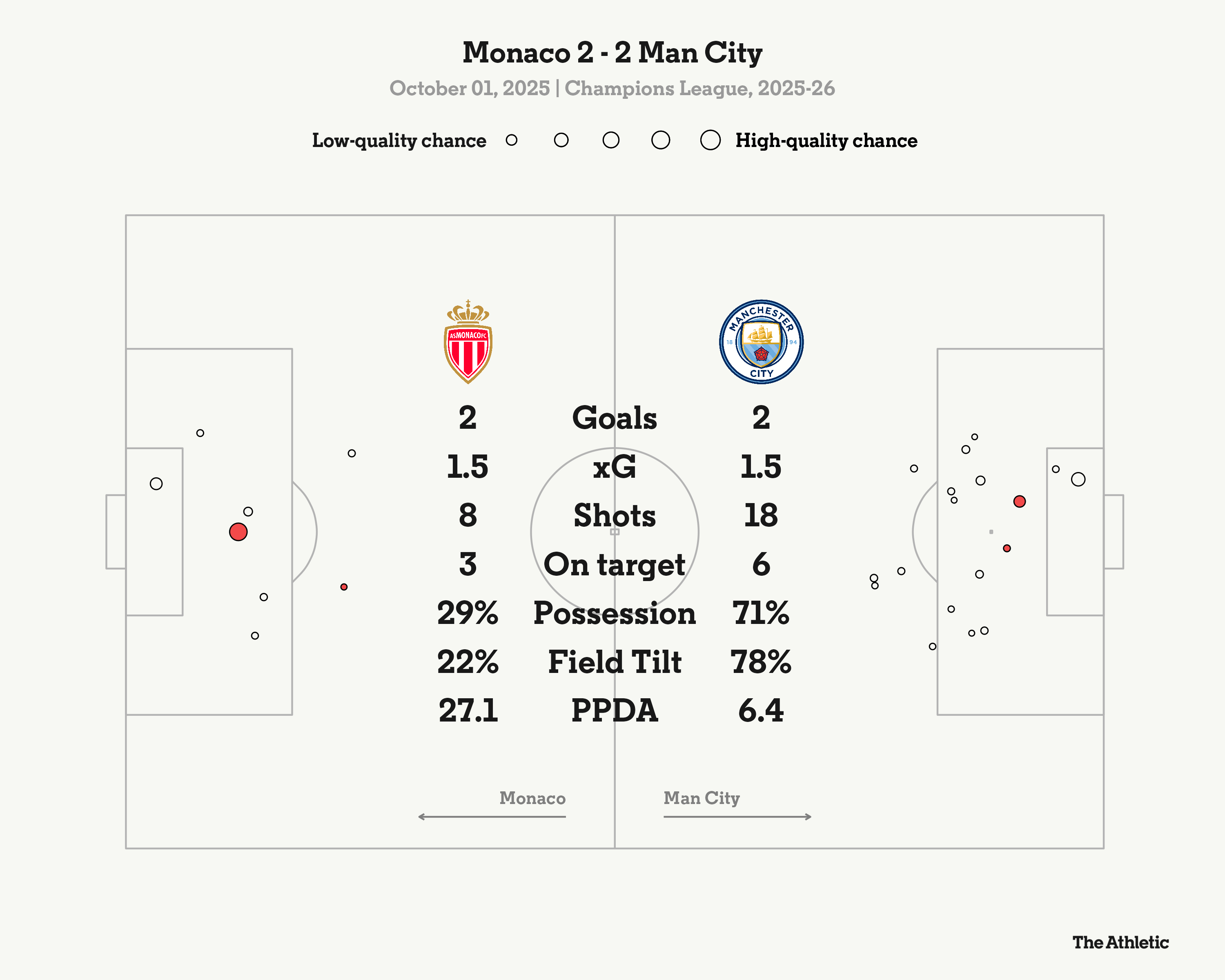 مانشستر سيتي سيشعر بخيبة أمل من التخلص من نقطتين في موناكو ، مع إيرلينج هالاند ، الذي سجل مرتين ، وبيب جوارديولا يعترف بأن التحسينات كانت ضرورية. شهدت نتائج أخرى أن احتمالات الملكية ترتفع من تسعة في المائة إلى 10 ، لكن فرصهم الأولى في الثامنة العليا عانت من انخفاض من 70 في المائة إلى 61.