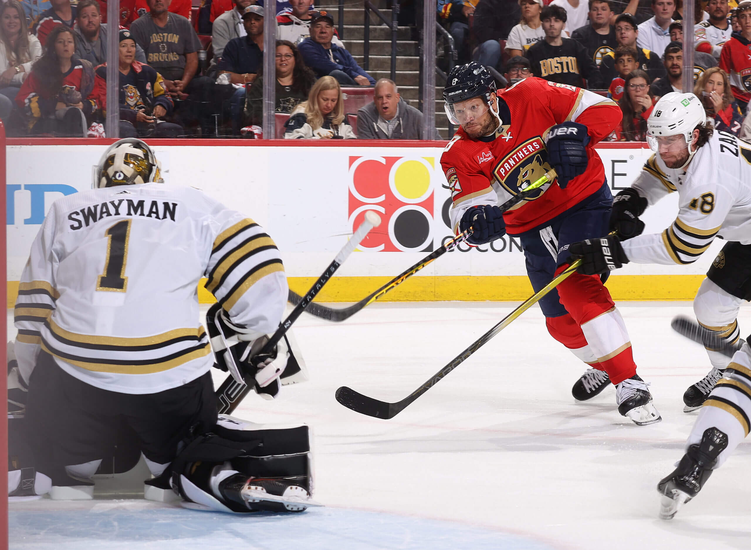 سوايمان يزدهر في ظل الظروف القاسية. لقد حمل الارتفاع العاطفي في فوز فريق Bruins 2-1 في المباراة 7 في الوقت الإضافي على Toronto Maple Leafs في الفوز 5-1 في المباراة 1 على Panthers.