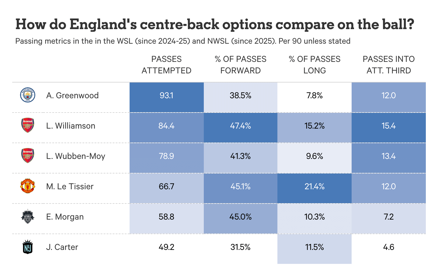 تتنافس لو تيسييه مع البرونزية التي لا تقهر في مركز الظهير الأيمن والقائدة ليا ويليامسون في مركز قلب الدفاع الأيمن، لكن بالنظر إلى مستواها، كان ينبغي أن تحظى بمزيد من وقت اللعب. قبل يوم السبت، استخدم ويجمان لو تيسييه مرة واحدة فقط في 13 مباراة لإنجلترا في عام 2025، ليحل محل الميدالية البرونزية في الدقيقة 57 ضد البرتغال في دوري الأمم الأوروبية في مايو. آخر مباراة لها كانت في ديسمبر ضد سويسرا. حتى عندما خرج البرونزي، لجأ ويجمان إلى نيامه تشارلز، الذي يلعب في مركز الظهير الأيسر لتشيلسي، ضد هولندا وويلز وإسبانيا خلال بطولة أوروبا.