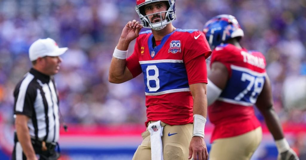 هل لعب جونز مثل لاعب الوسط الذي يستحق تمديد عقده في مارس 2023؟ أمممم… لا. فهو يحمل معدل EPA لكل تمريرة مرتدة يبلغ -0.26 وتصنيف تمرير يبلغ 65.1 منذ بداية الموسم الماضي. ويحتل هذا المرتبة 38 (قبل الأخير) و39 (الأخير) بين لاعبي التمرير الذين لديهم 200 تمريرة مرتدة على الأقل خلال الفترة. — لاري هولدر، كاتب بارز في اتحاد كرة القدم الأميركي