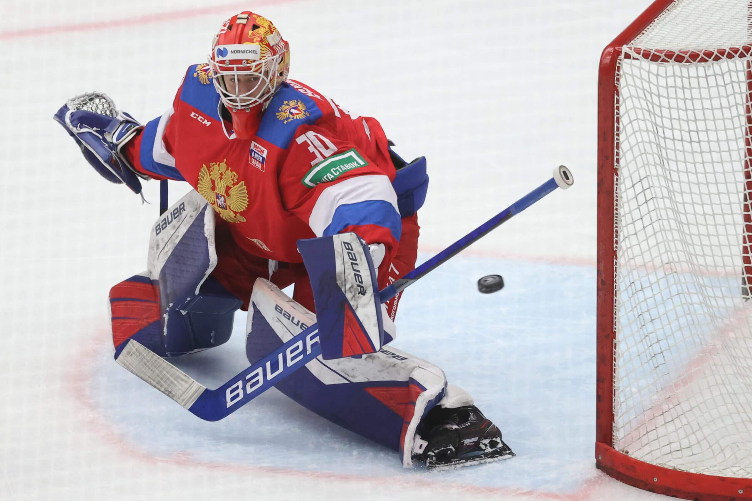 يعد أسكاروف أحد أكثر حراس المرمى موهبة في هذه الرياضة وهو الحارس الثاني الذي تم اختياره. لقد حقق 21 فوزًا متتاليًا في الدوري الأمريكي للهوكي العام الماضي ويمكن أن يبدو لا يقهر عندما يكون في أفضل حالاته. إنه يتمتع بقدرة رياضية هائلة وسرعة في الحركة، مع دفعات قوية من مركز إلى مركز ومن أسفل إلى أعلى وأقدام نشطة (ومتوترة في بعض الأحيان) تسمح له بالبقاء مع المهاجمين. إنه ينقذ الكثير من الفرص الثانية والثالثة، ويمكنه حقًا أن يبهرك بالأقراص التي تصل إليه. يمنحه هذا المزيج من القوة والسرعة ميزة مثيرة ويدعمه سجل حافل في روسيا والدوري الأمريكي للهوكي.