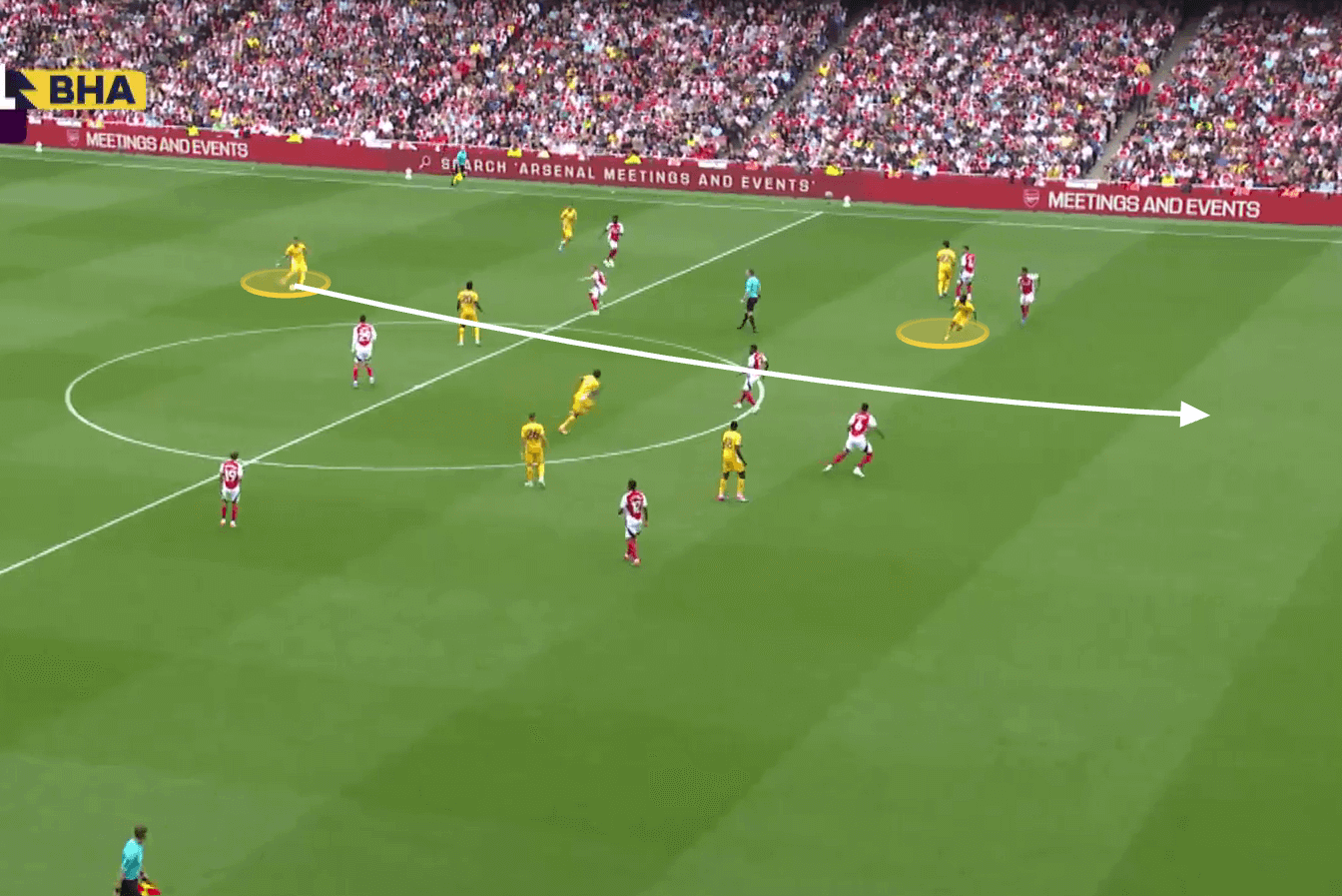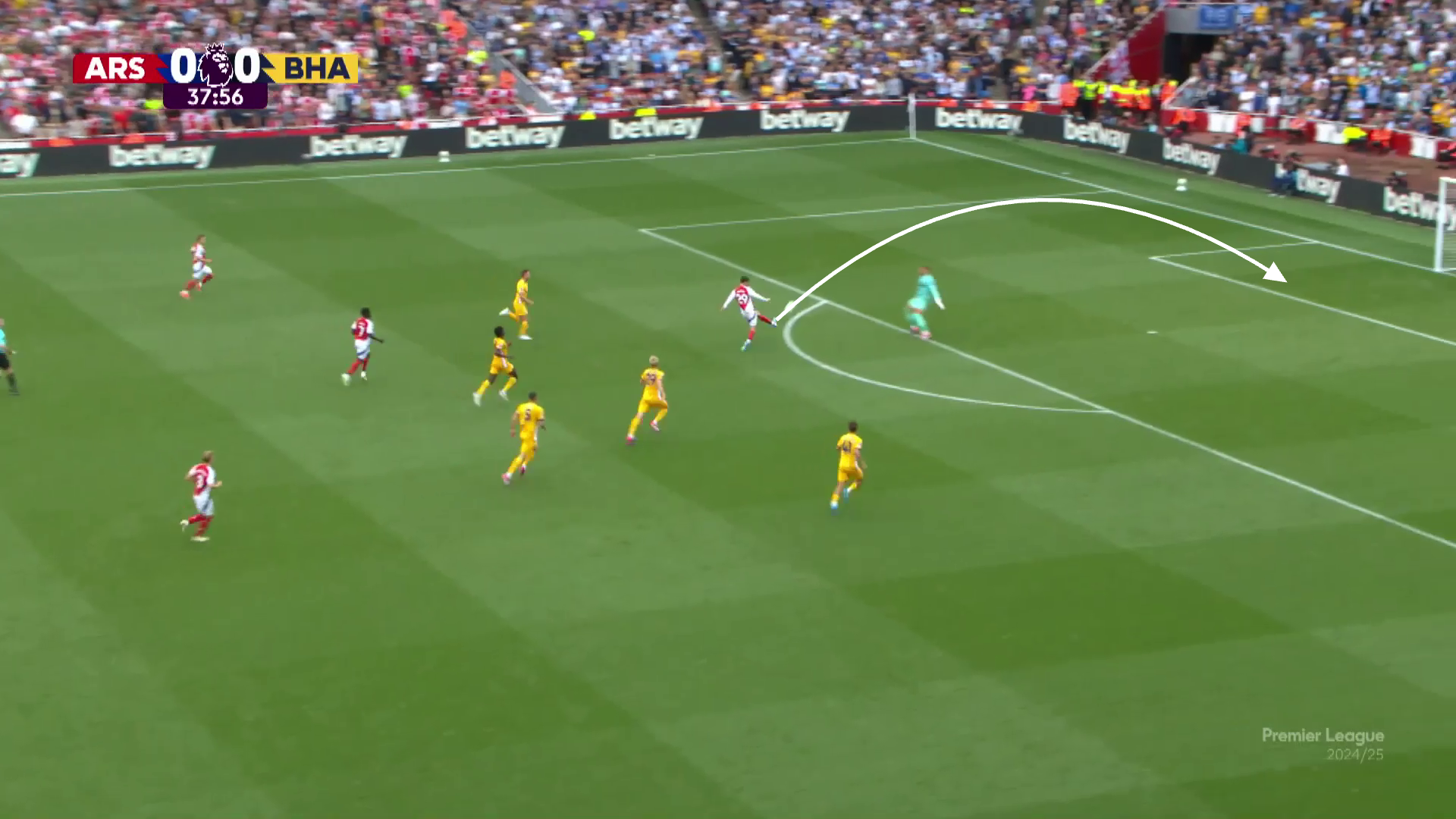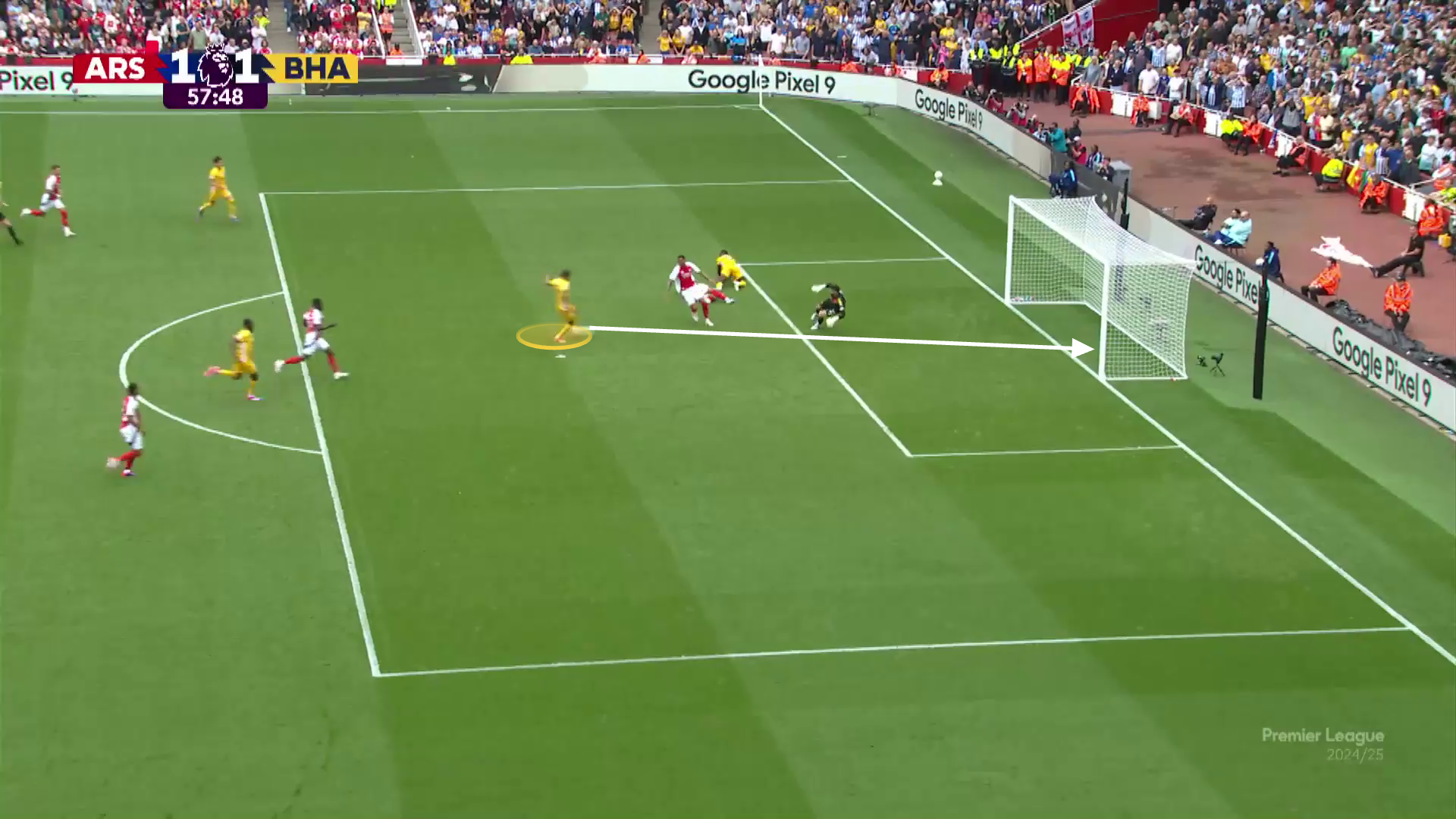 تصدى ديفيد رايا حارس مرمى أرسنال لتسديدة مينتيه، لكن جواو بيدرو سجل الهدف الأول ليحافظ برايتون على سجله الخالي من الهزائم هذا الموسم تحت قيادة هورزيلر.