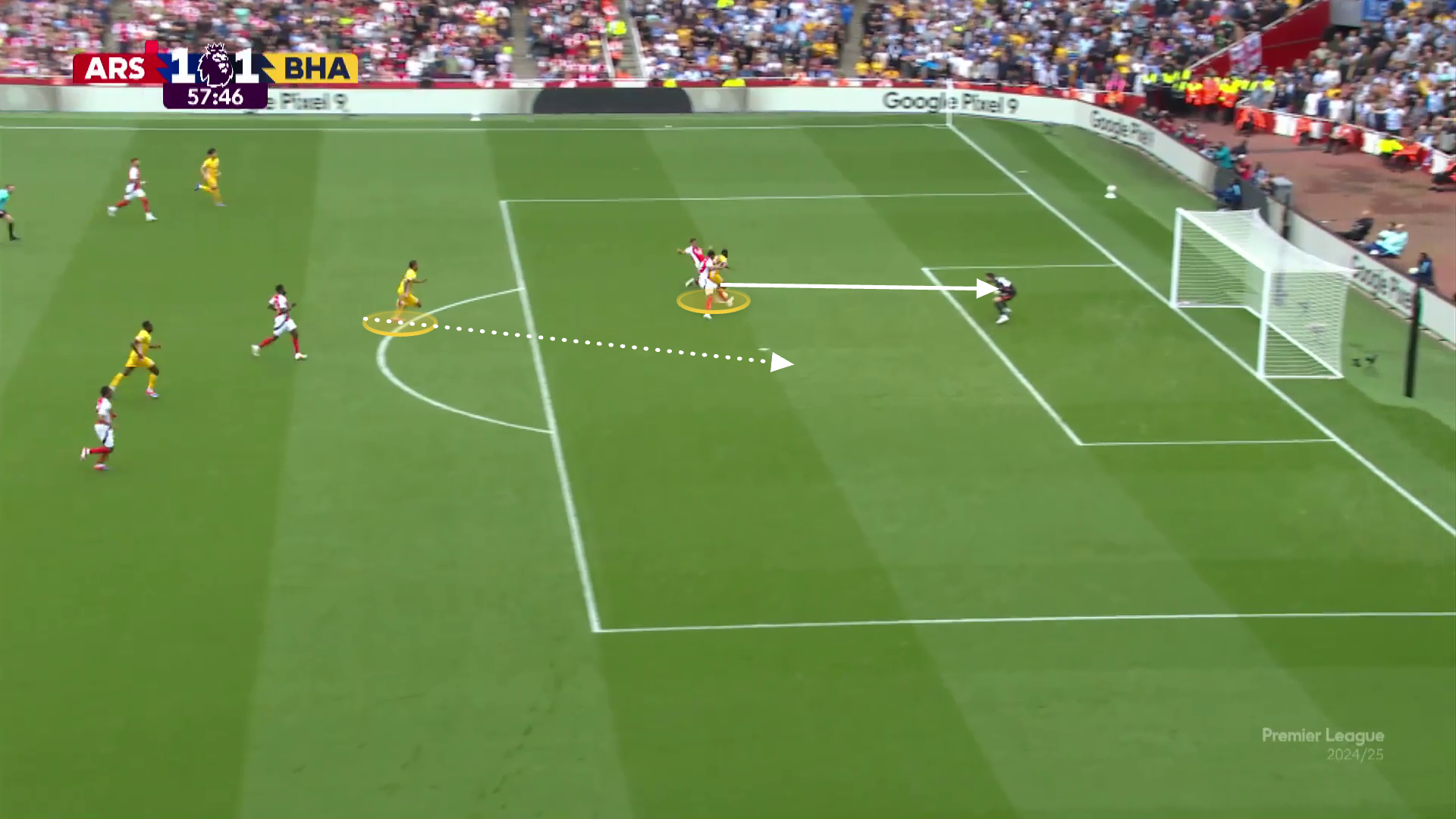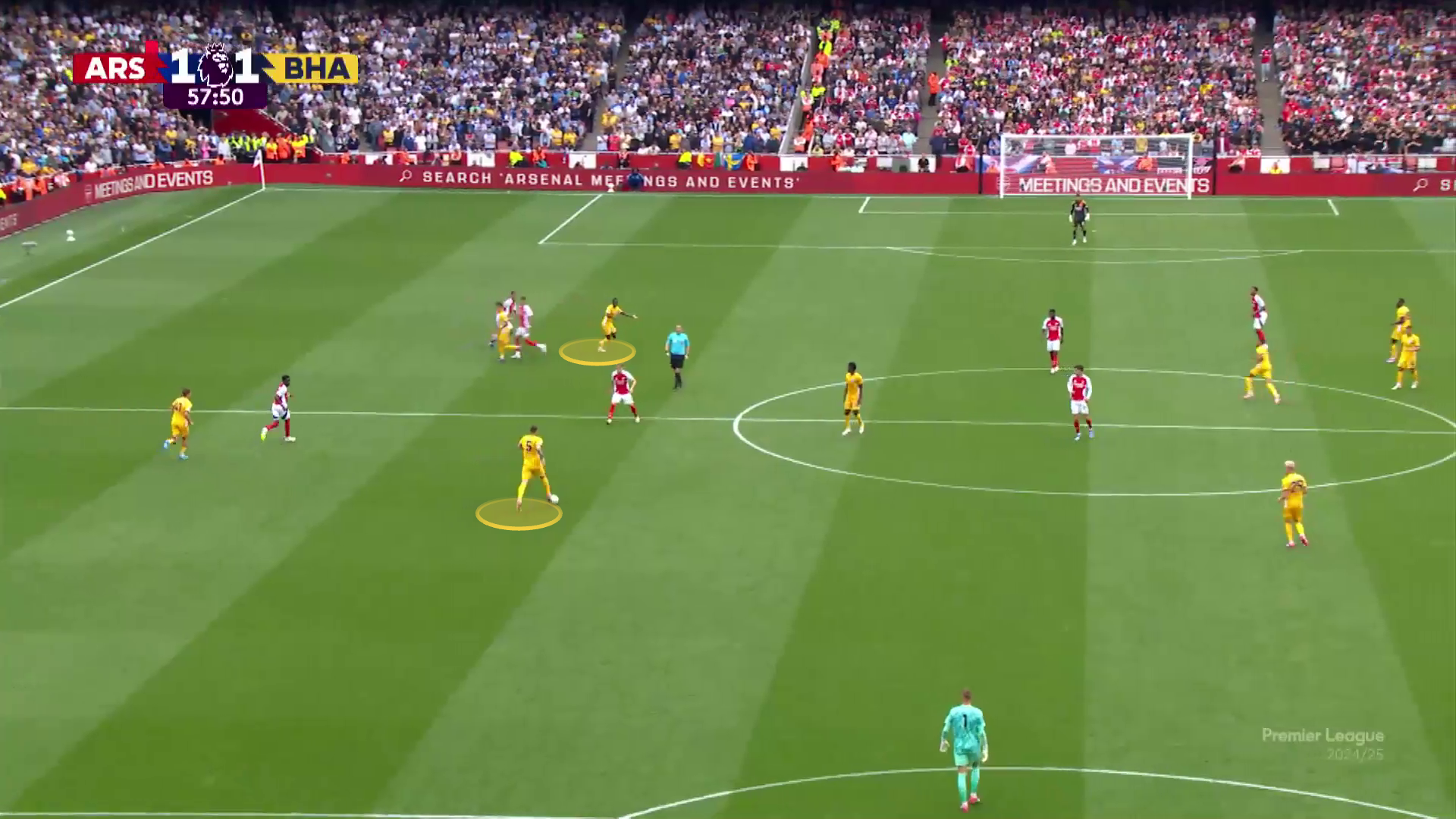 وأظهر دنك جانبًا مختلفًا من أسلوب لعبه – ما يفعله عند الاستحواذ – بمساهمته المحورية في هدف التعادل لبرايتون في الدقيقة 58. وكان أرسنال قد لعب بعشرة لاعبين بعد طرد ديكلان رايس قبل تسع دقائق بسبب مخالفتين تستحقان الإنذار.