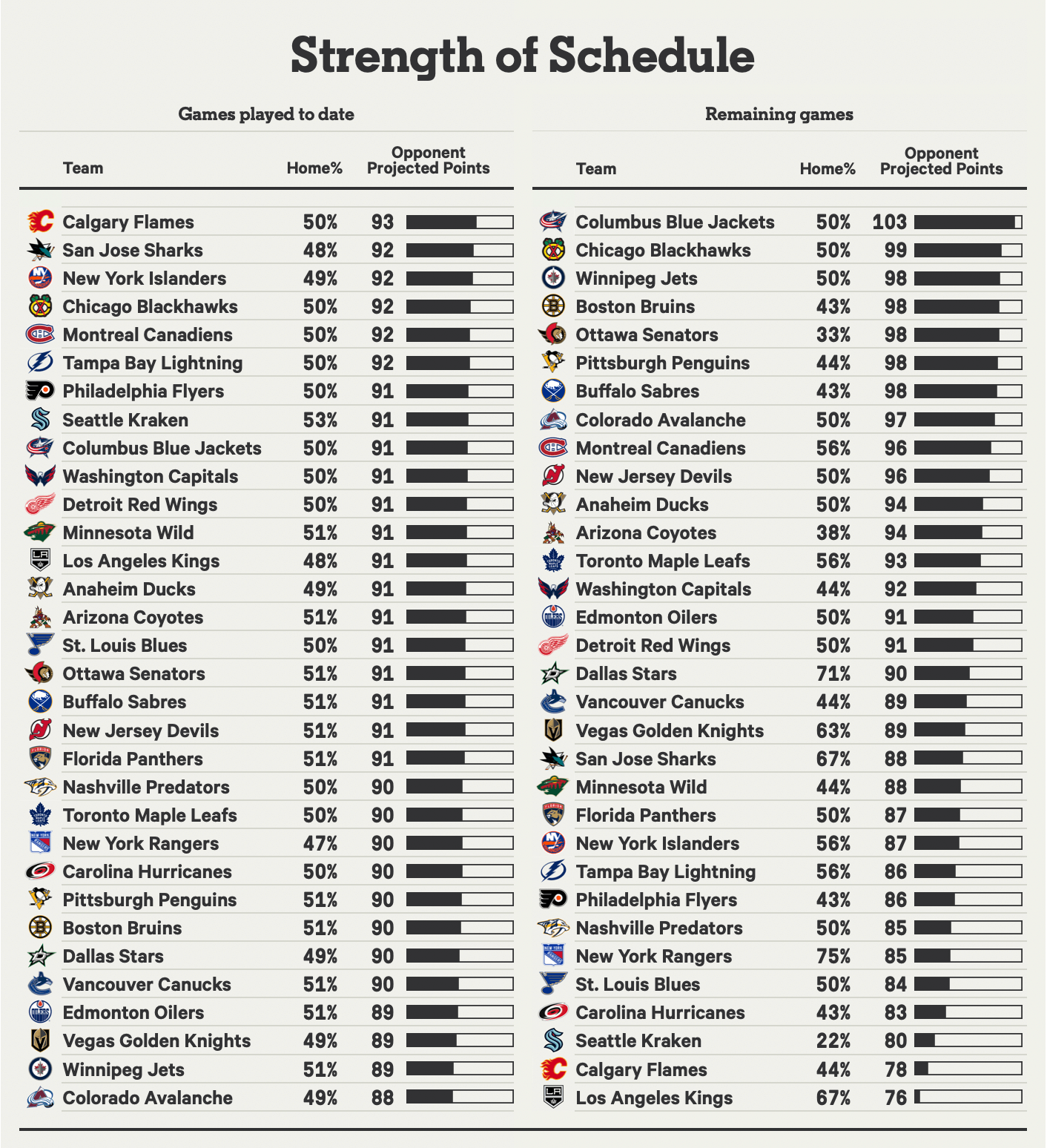 2023-24 قوة جدول NHL