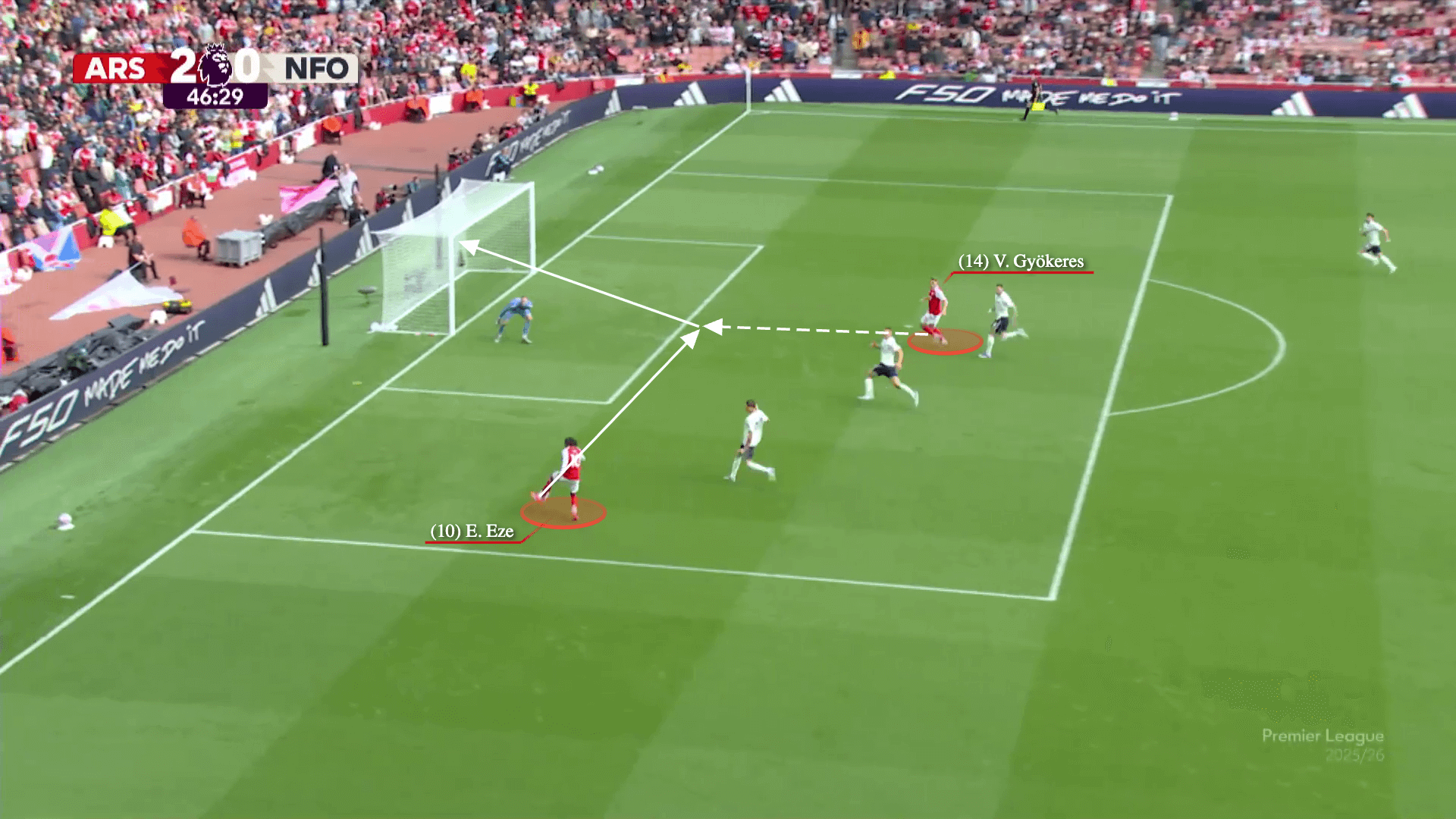 ثم لعب Eze تمريرة عبر المرمى لـ Gyokeres ليجعل النتيجة 2-0.