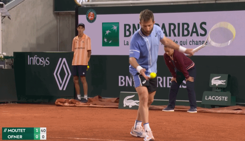 يقف النمساوي عميقًا بشكل لا يصدق، كما هو الحال مع العديد من العائدين في جولة الرجال أيضًا، من أجل منح أنفسهم الوقت – ولكن هنا، يمنح نفسه وقتًا أطول من اللازم للوصول إلى الكرة. إنها الآس، وموتيه هو 1 مقابل 1.