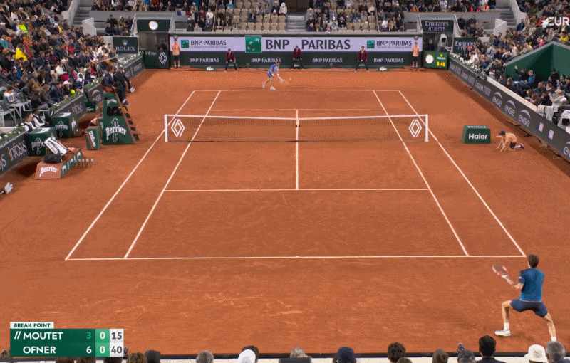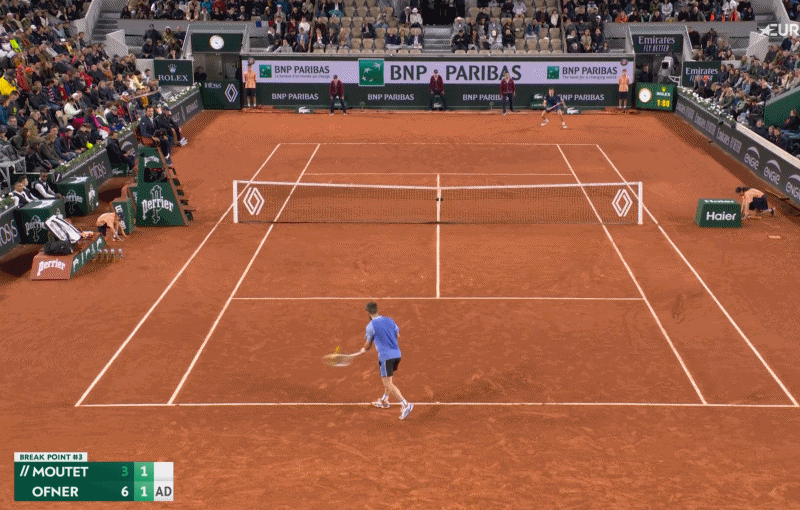 لكن موتيه لم يكن رادعًا، حيث استخدمه مرة أخرى في نقطة كسر الإرسال، ولكن هذه المرة في ملعب التعادل. إنه عميق بعض الشيء والاتجاه لا يخرج Ofner من خط الجري الذي حدده بالفعل مع موقع عودته. يؤدي ذلك إلى تحويل الإرسال إلى كرة سهلة ليتحولها Ofner إلى تسديدة قريبة، لكن لا يتعين عليه متابعتها – لأنه موجود بالفعل في الشبكة. وهذا يضع ضغطًا كبيرًا على تسديدة موتيه التالية، والتي يسددها في الشباك ليستقبل الاستراحة.