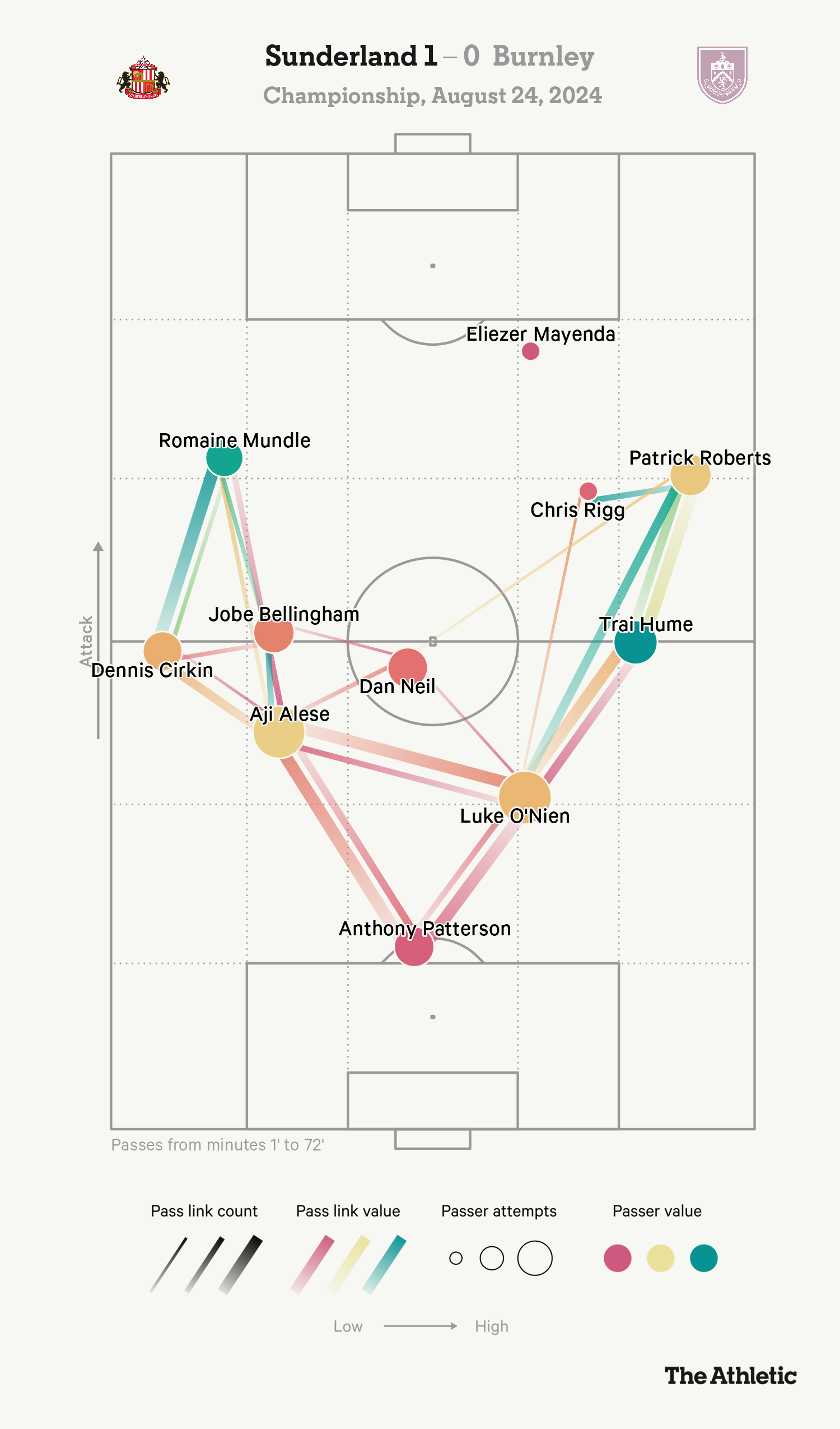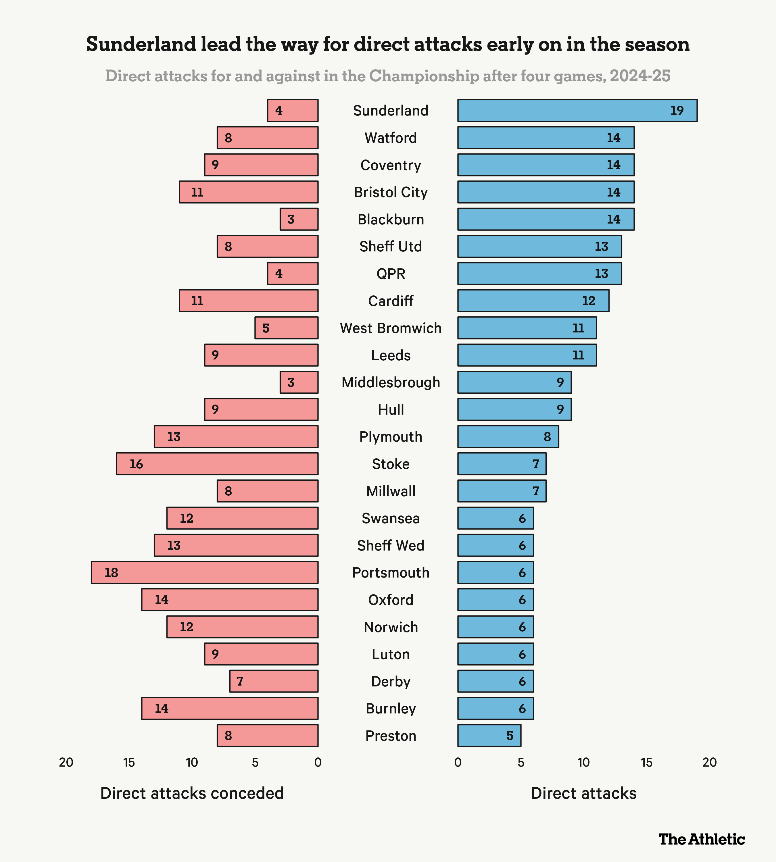 تقدم سندرلاند في الدقائق 18 و11 و26 و31 في مبارياته الأربع، وتقدم في كل مباراة في الشوط الأول. وقد منحه النشاط المبكر مساحة للتنفس وتنازل عن بعض الأراضي. وبنسبة 42.9 في المائة، فإن متوسط استحواذ سندرلاند على الكرة هو ثالث أقل متوسط في الدرجة الثانية.