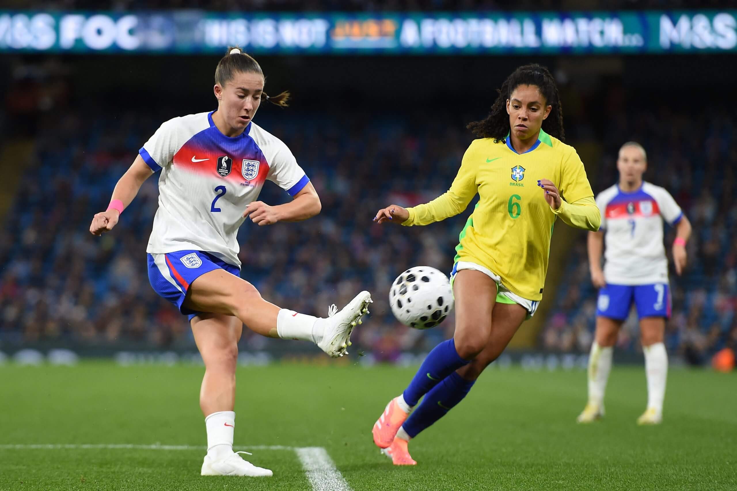كان أداء إنجلترا أفضل بعد الهدفين الأولين للبرازيل، على الرغم من طرد البرازيل بعد خطأ سخيف من القائدة أنجلينا.كوستانتينو في الدقيقة 21 كما ركضت إيلا تون على المرمى. ورغم ذلك، ظل دفاع البرازيل في المقدمة، وبينما هيمنت إنجلترا على الكرة وسددت في إطار المرمى مرتين عبر أليكس جرينوود ثم جورجيا ستانواي، فإن اتخاذ القرار في الثلث الأخير كان بمثابة الخيانة لهم.