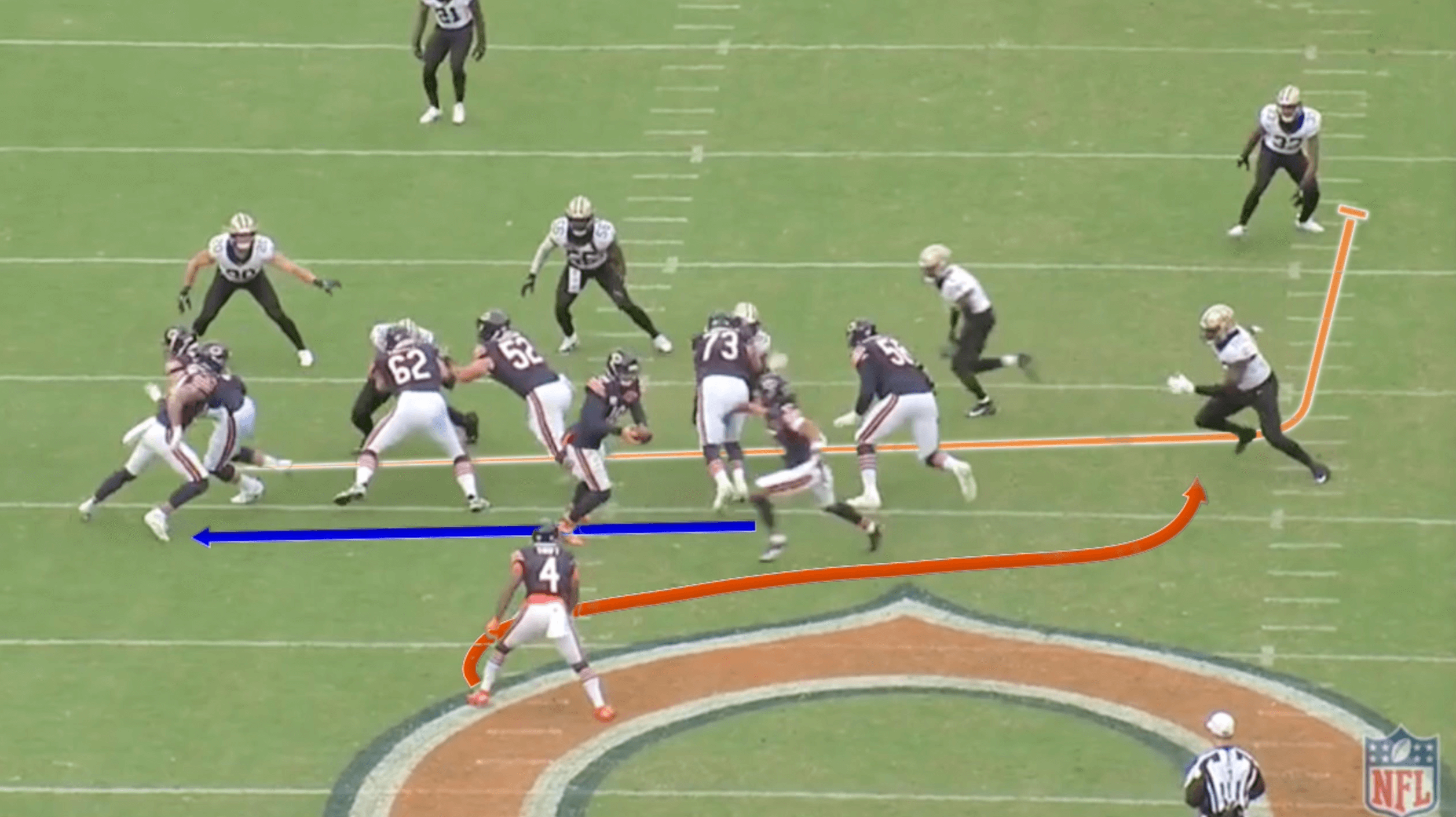في الألعاب الأربع الأولى، بلغ متوسط ​​​​الدببة 3.8 ياردة لكل عملية حمل وحققت معدل نجاح سريعًا قدره 36.6 بالمائة. في المباراتين الأخيرتين، بلغ متوسطهم 5.5 ياردة لكل حمل بمعدل نجاح سريع قدره 54 بالمائة. لم تبدو لعبة Bears للجري بهذه الجودة منذ وقت طويل، وهذا ليس مجرد مبالغة. تعد مبارياتهم ضد Dallas Cowboys وWashington Commanders وNew Orleans Saints ضمن المراكز السبعة الأولى من حيث معدل النجاح السريع في آخر 200 مباراة للامتياز (أشاد بـ Nate Tice للحصول على الإحصائيات).