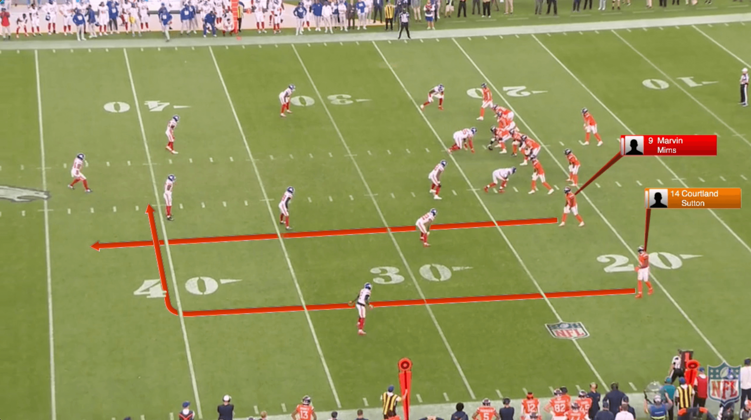 حاول نيكس وضع الكرة فوق العمالقة تحت المدافع لكنه أطاح بساتون. لحسن حظ نيكس، كان ميمز هناك لأنه توقف عن الركض واكتملت التمريرة.
