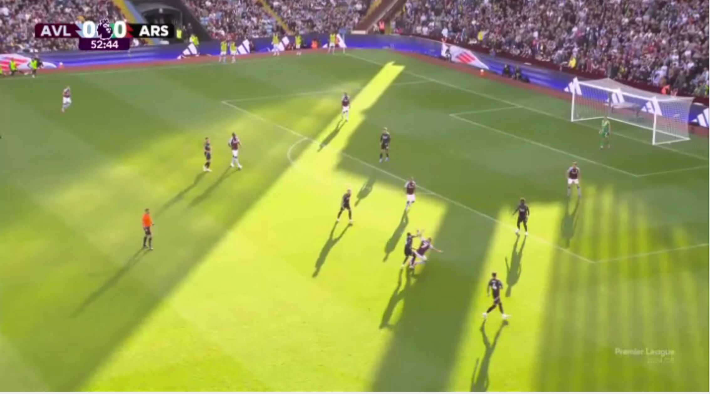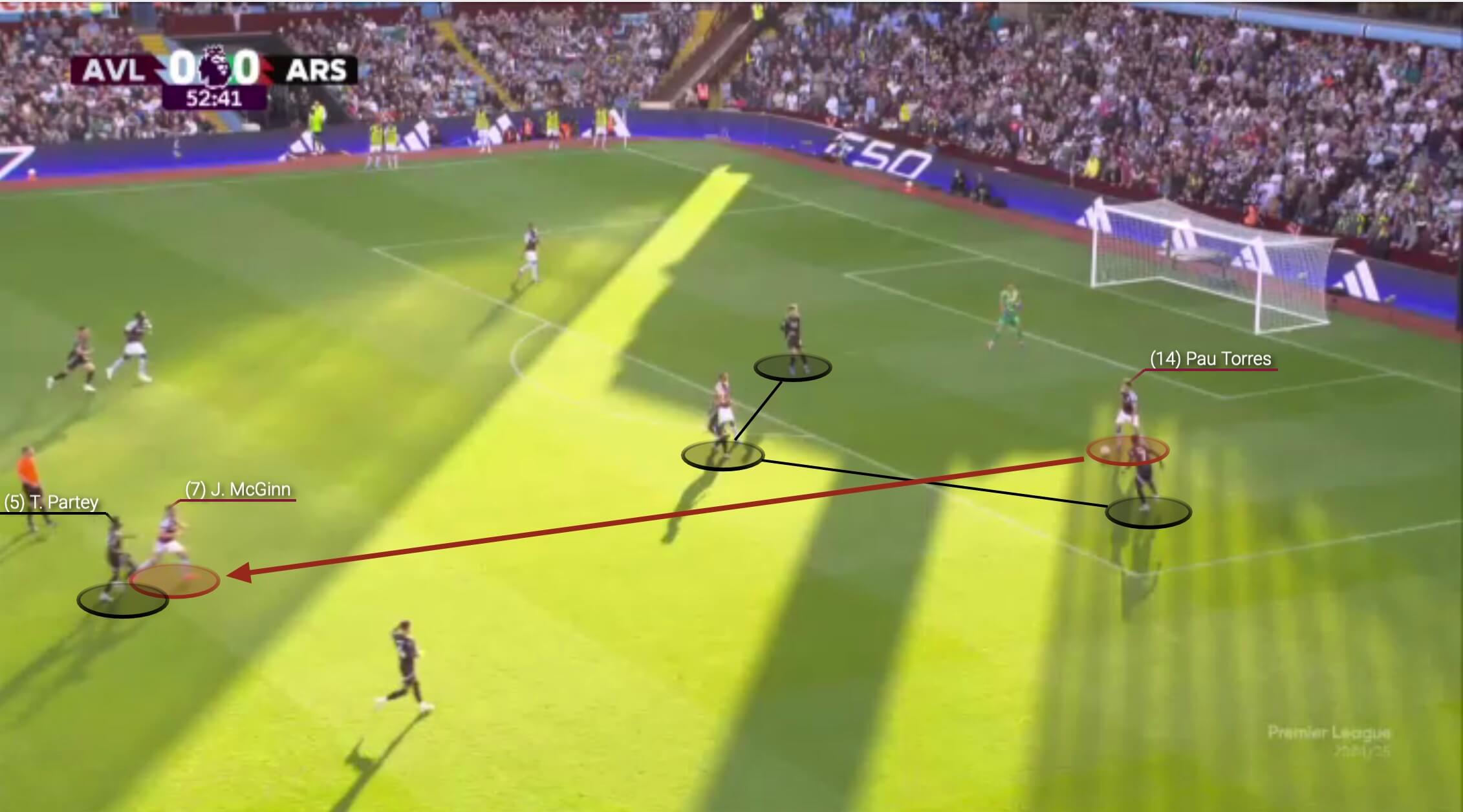 تمكن كاش من العثور على تيليمانس، الذي مرر الكرة إلى ماكجين؛ وفي غضون ثوانٍ، نجح فيلا في تحويل الضغط الخطير الذي يمارسه آرسنال إلى انتقال خطير بالنسبة لهم.