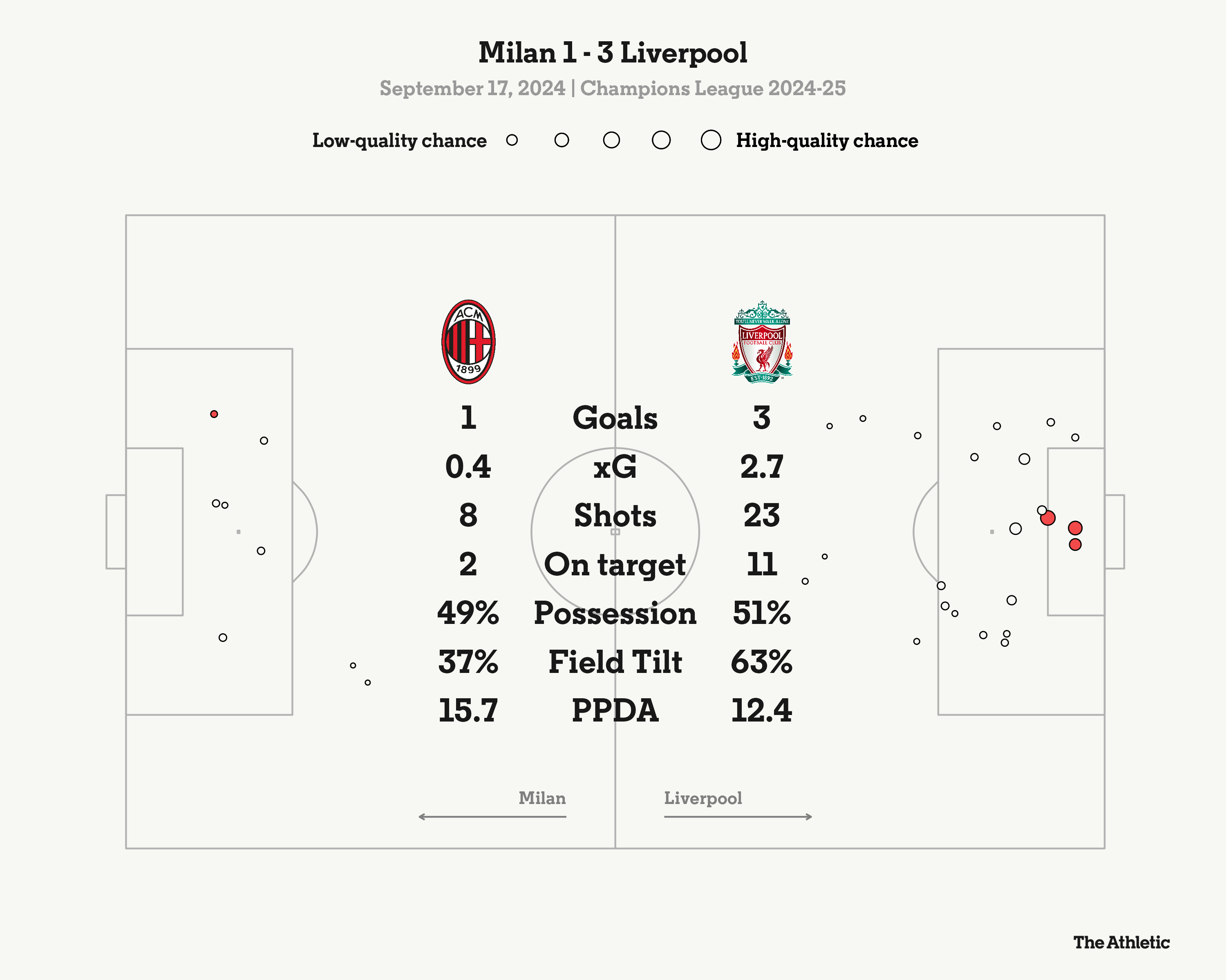 كانت المباراة الأصعب في تلك الليلة في إيطاليا – ولكن على الرغم من الخوف المبكر، نجح ليفربول في تجاوز ميلان بسهولة ليزيد الضغوط على المدير الفني الجديد باولو فونسيكا.