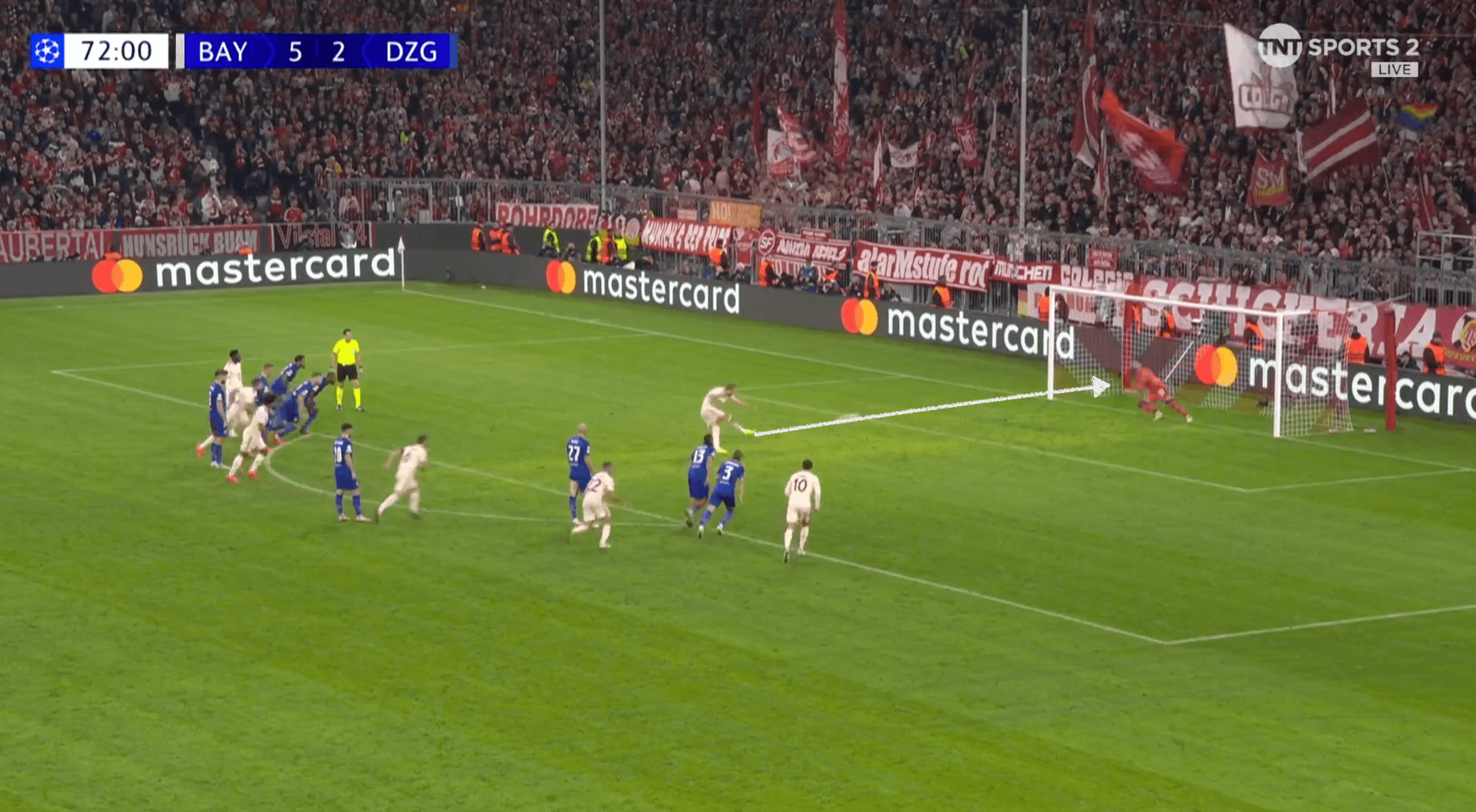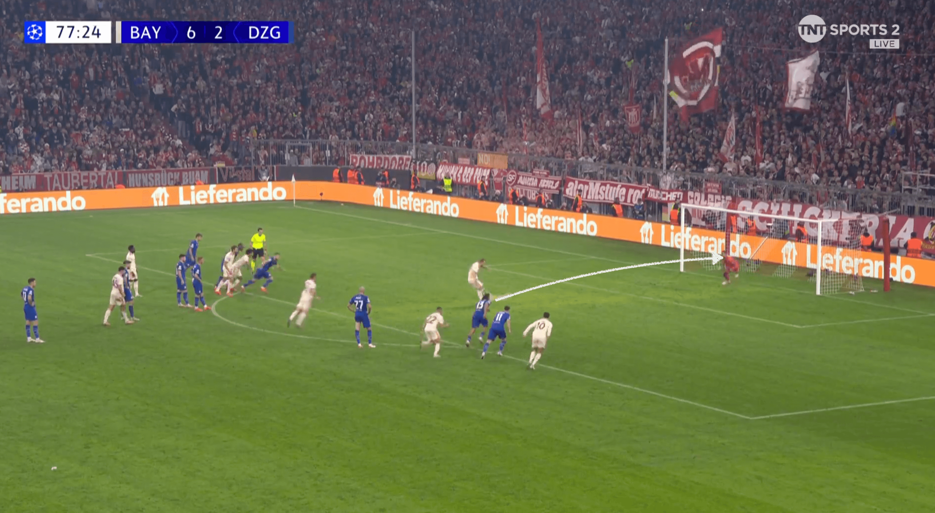وقد يكون بايرن ميونيخ أحد منافسيهم، حيث كان فوزه المذهل 9-2 على دينامو زغرب هو النتيجة الأبرز في هذه الليلة أو أي ليلة أخرى، نظراً لأن بايرن أصبح أول فريق على الإطلاق يسجل تسعة أهداف في مباراة بدوري أبطال أوروبا.